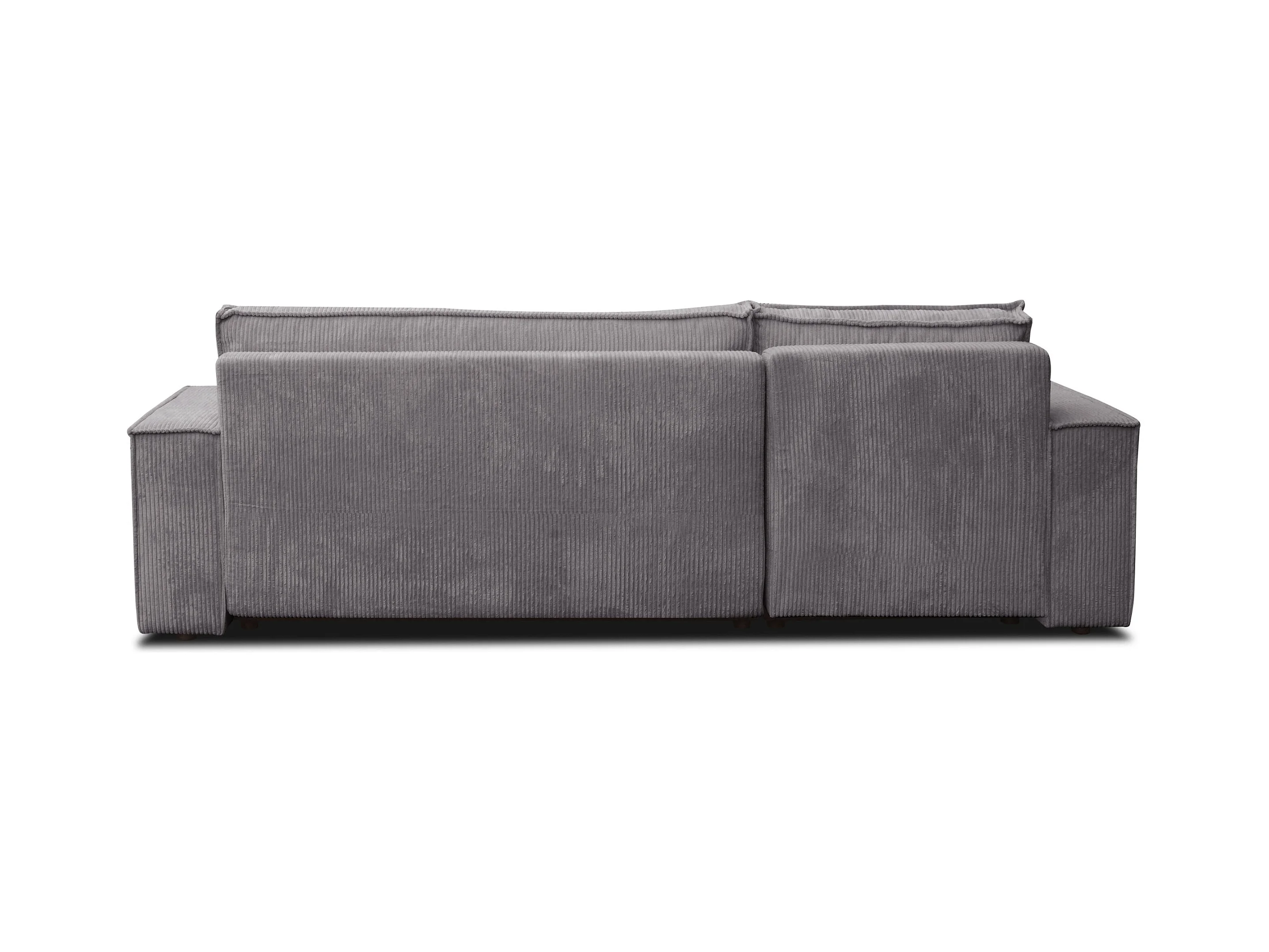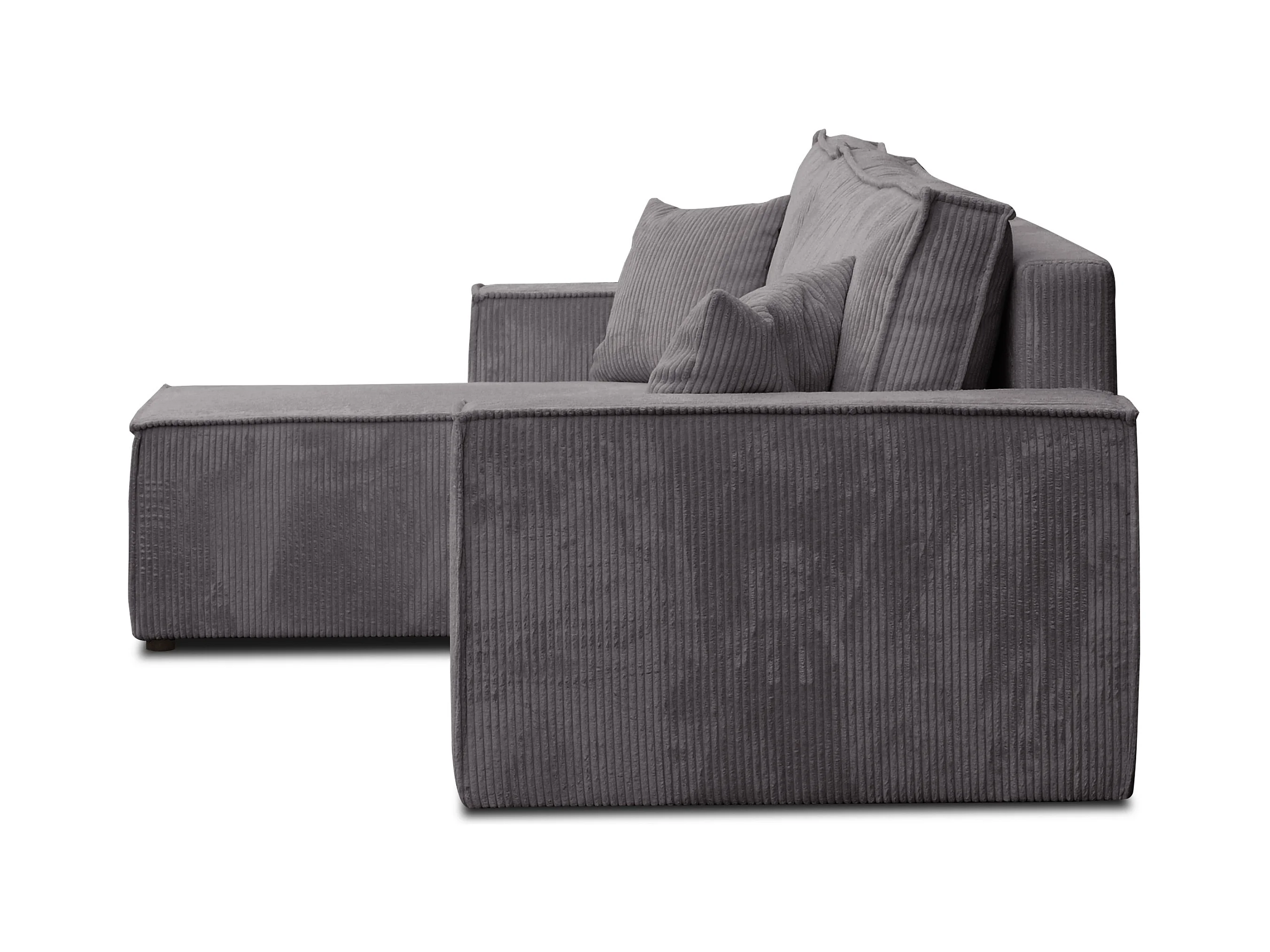 Canapé d'angle Luna XL avec fonction couchage et coffre de rangement, couleur : gris foncé, tissu velours côtelé, pouf à gauche ou à droite