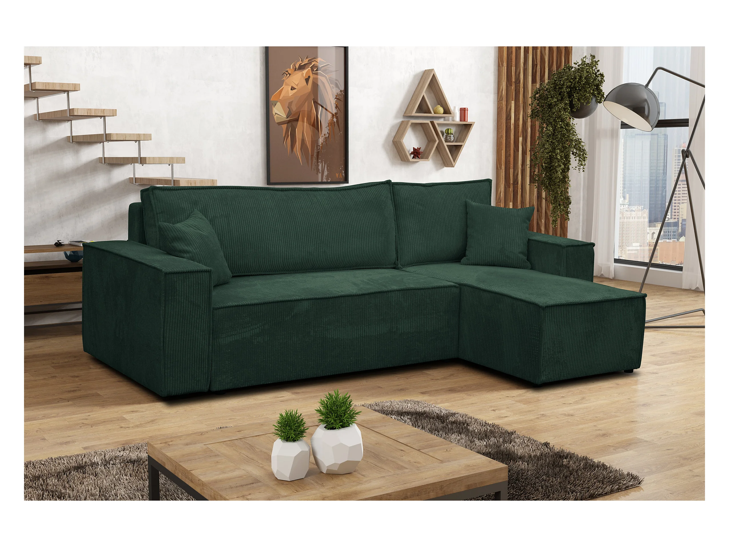 Canapé d'angle Luna XL avec fonction de couchage et coffre de rangement, couleur : vert, tissu velours côtelé, pouf à gauche ou à droite