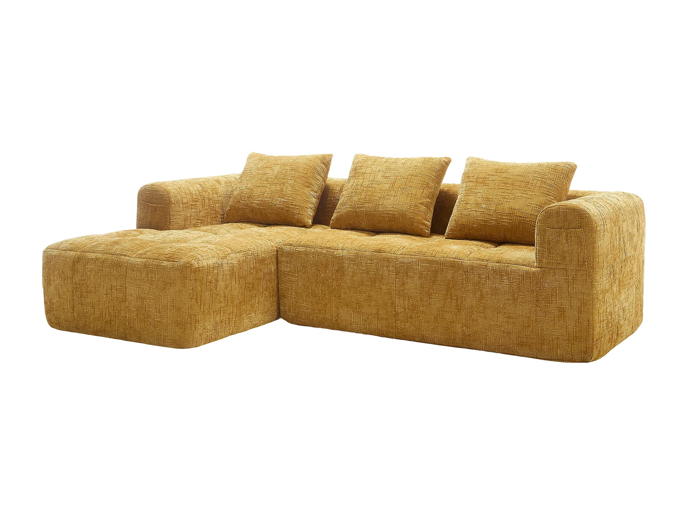 Canapé d'angle jaune - Canapé droit avec poches de rangement et 3 coussins - avec méridienne et accoudoirs