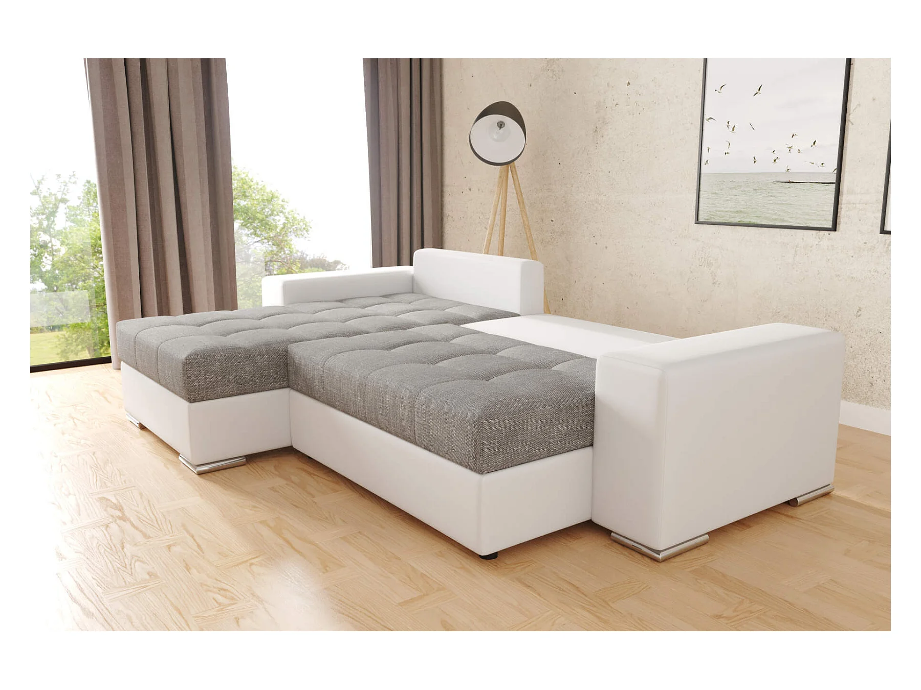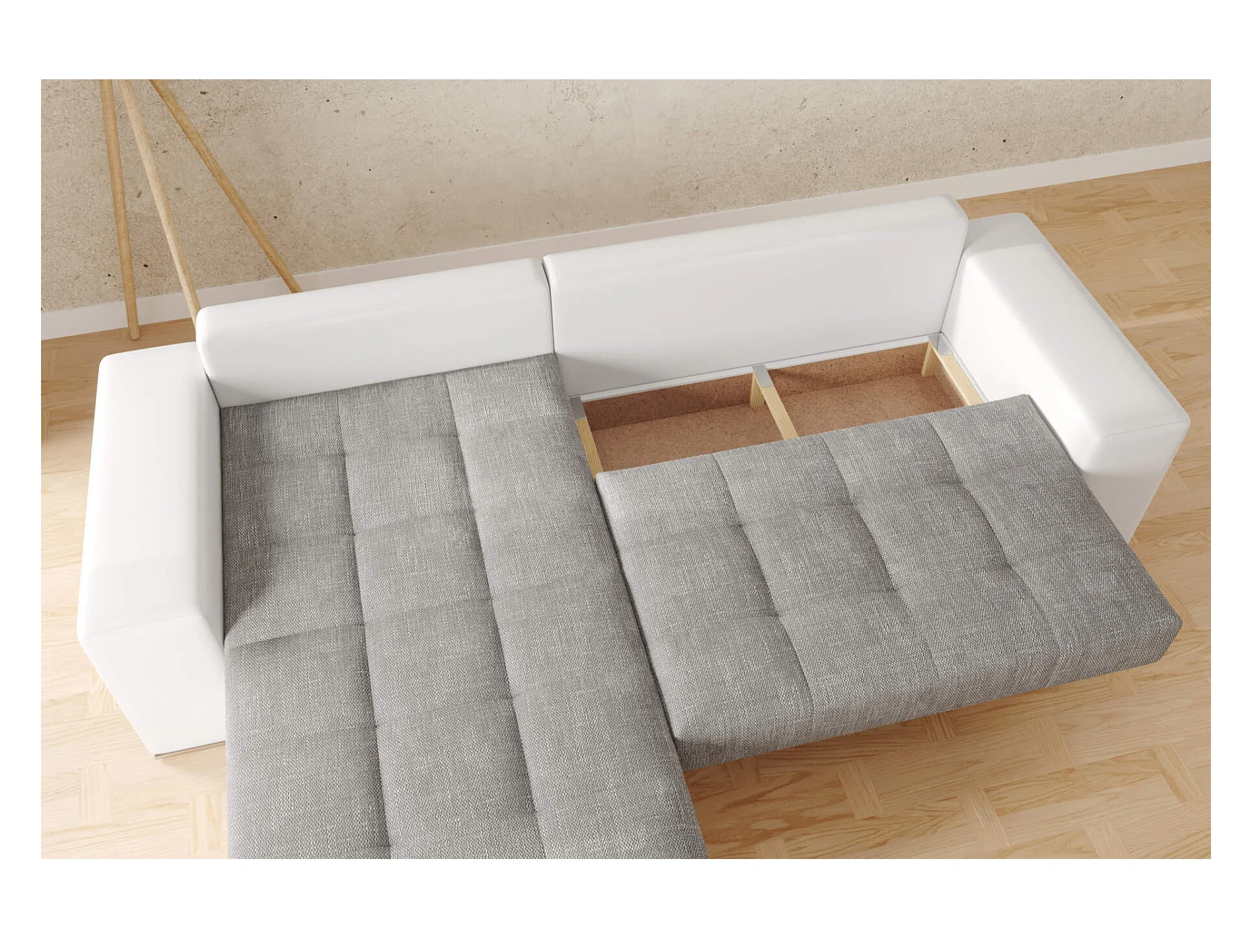 canapé d'angle josua L avec lit et rangements - blanc + gris