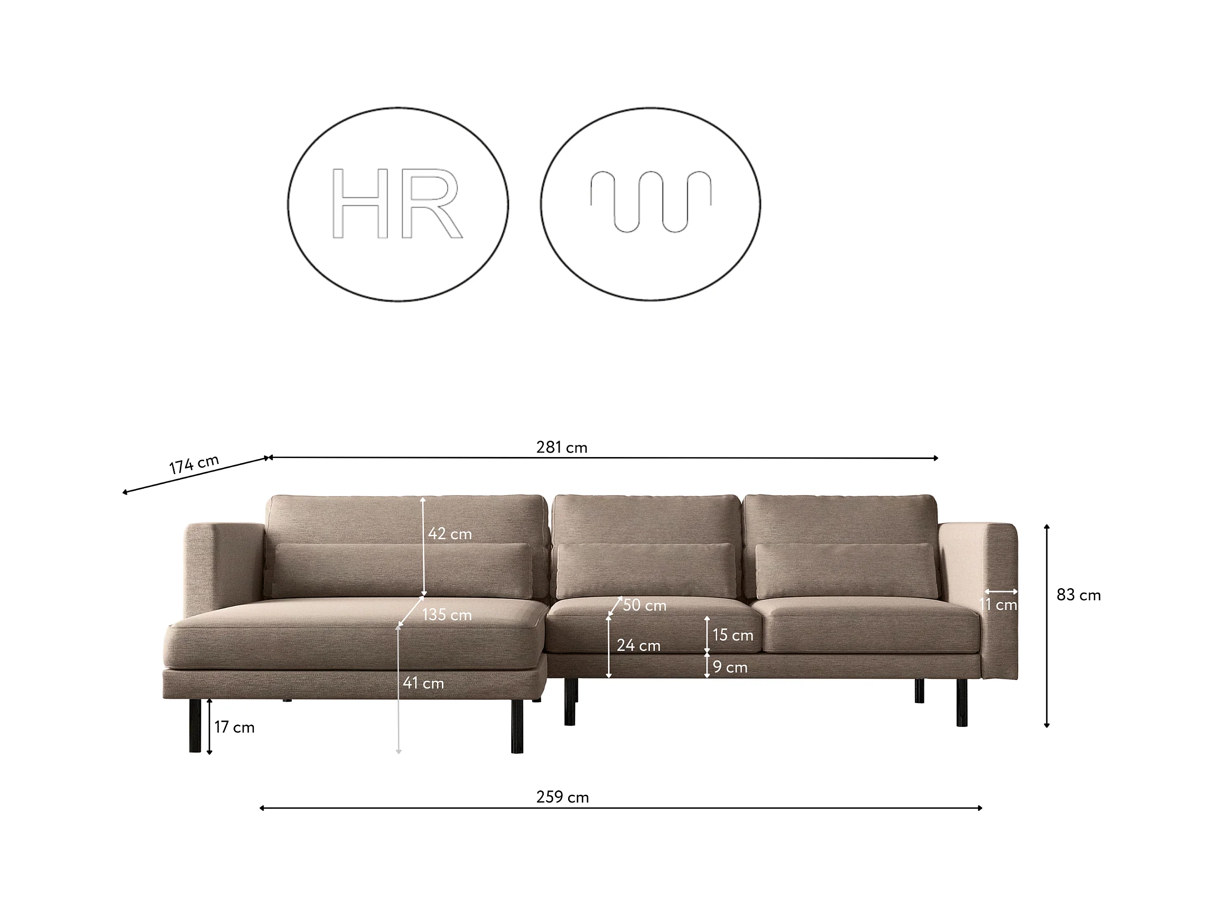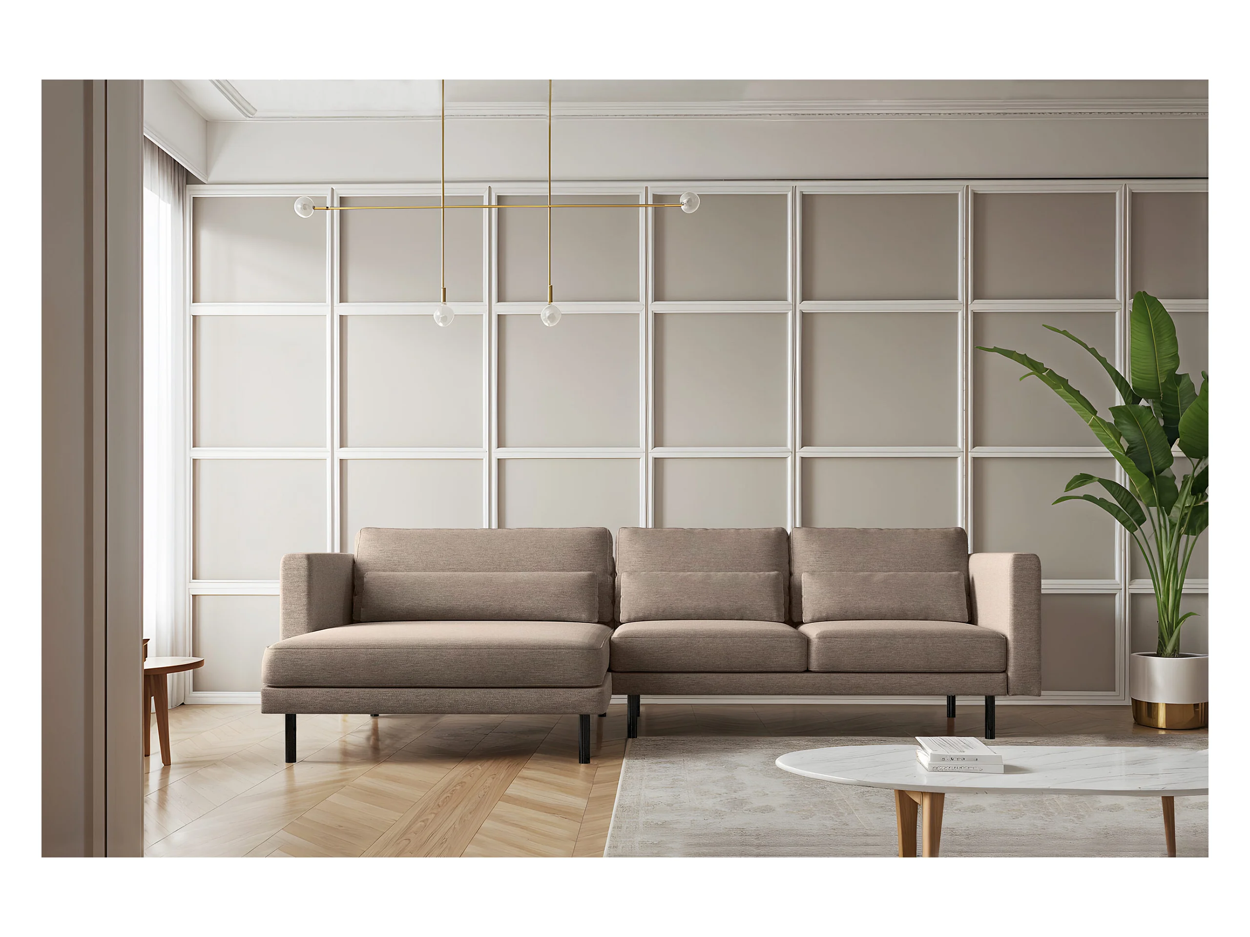 Canapé d'angle L-form Dani moderne et spacieux tissu Verita beige chaud gauche