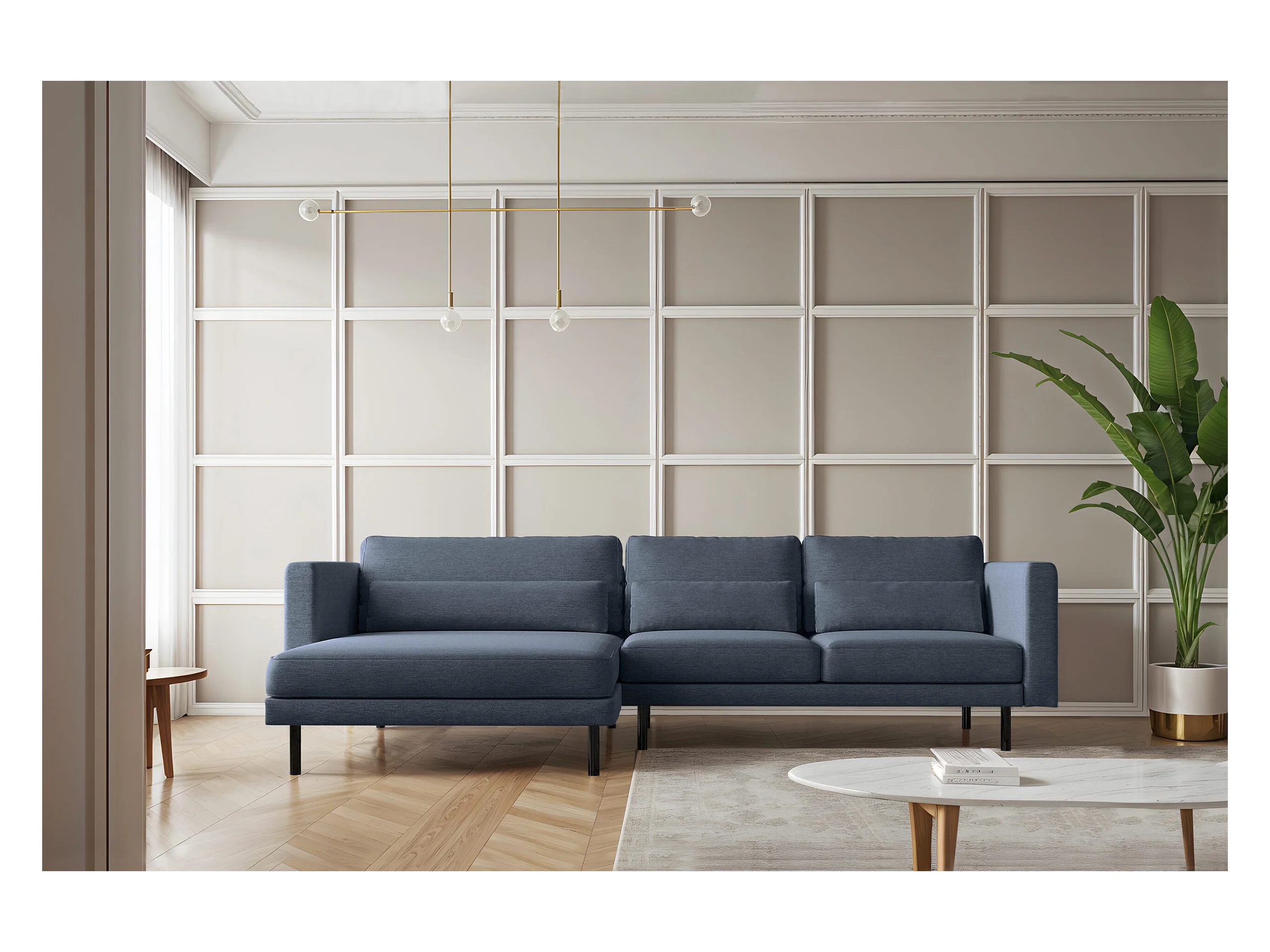 Canapé d'angle L-form Dani moderne et spacieux tissu Verita bleu marine gauche