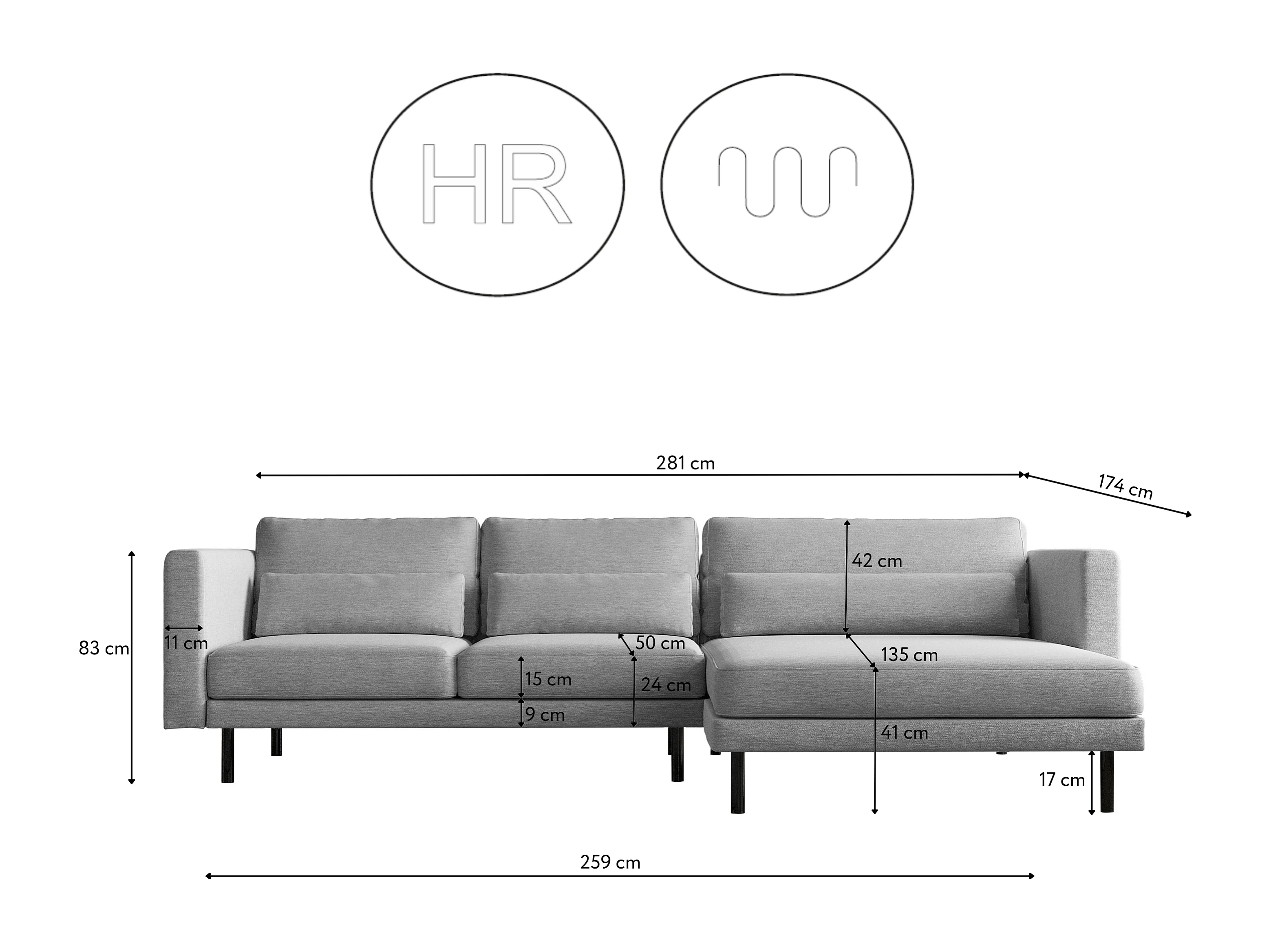 Canapé d'angle L-form Dani moderne et spacieux tissu Verita Gris Droite