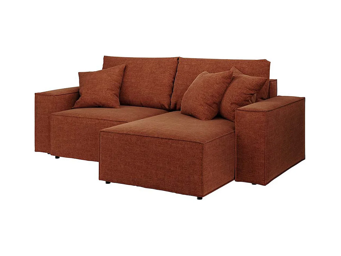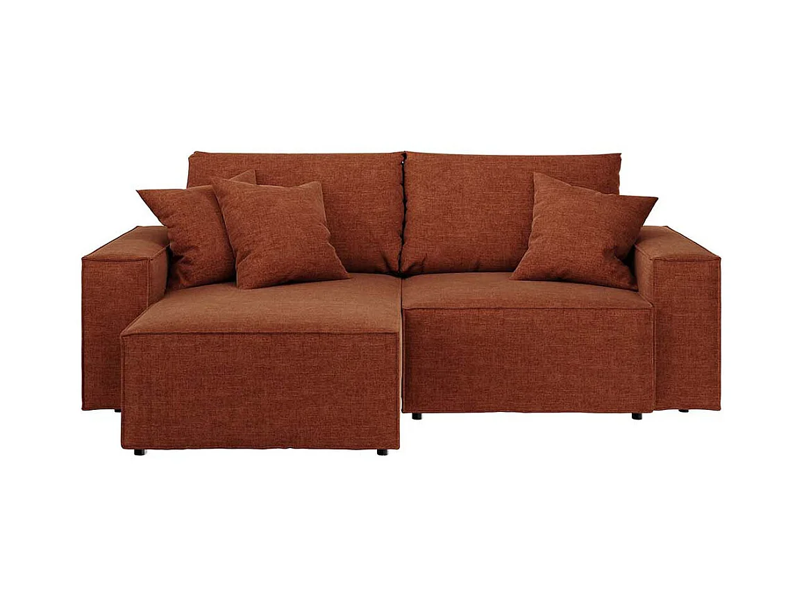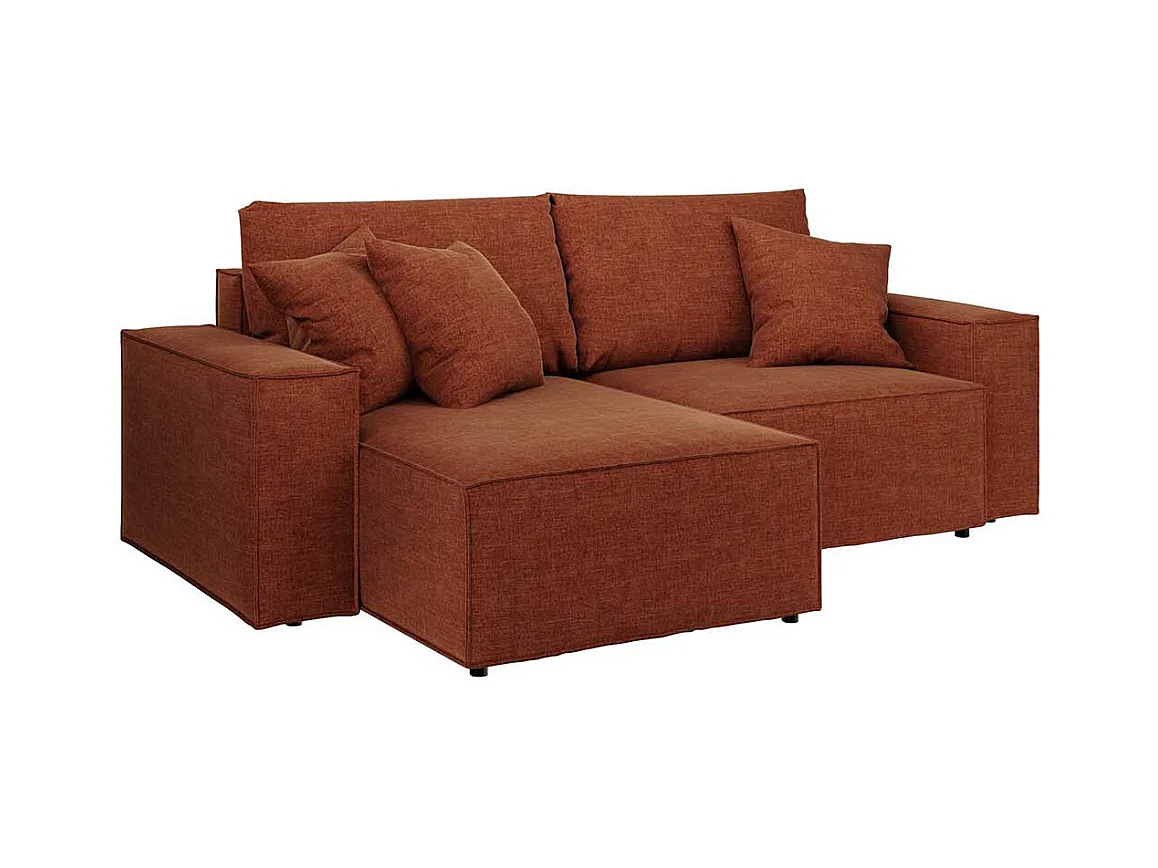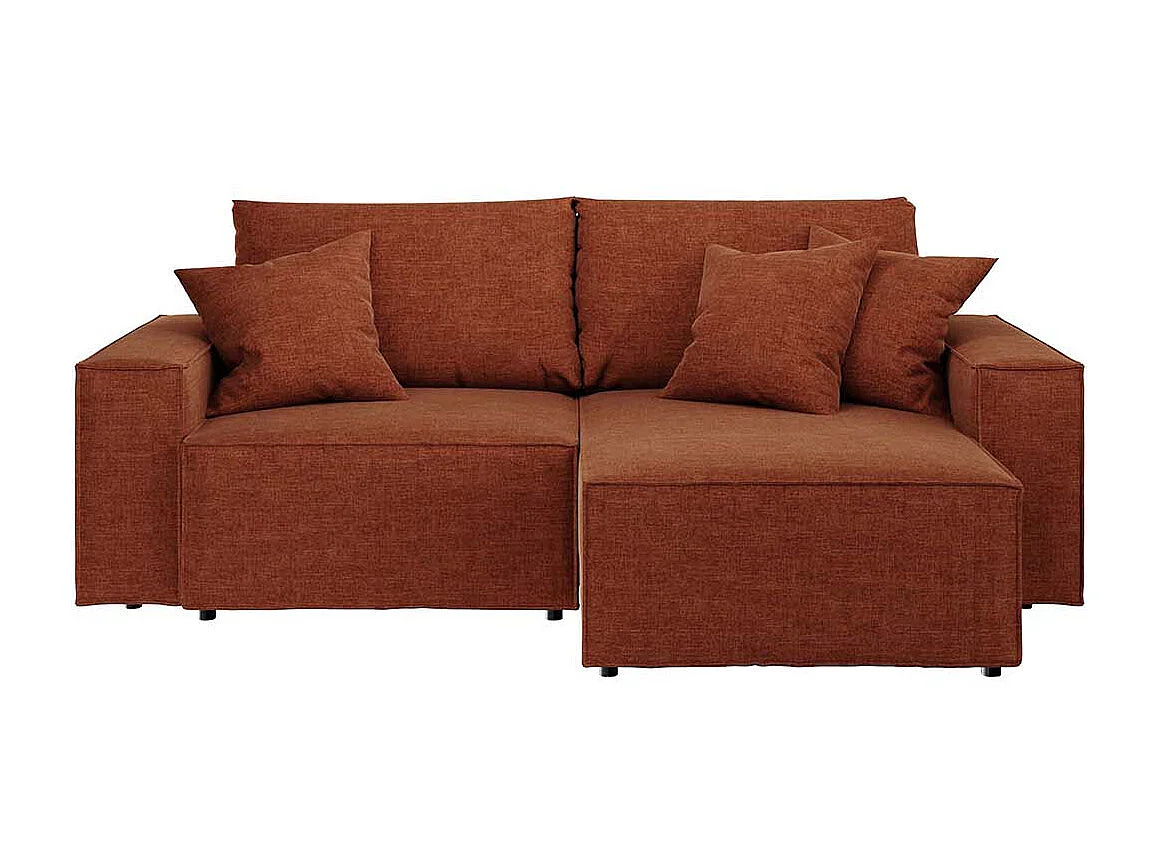 Canapé d'angle avec fonction couchage et coffre de lit, Canapé forme L, Canapé forme L tissu Gabon Riviera Droite Orange