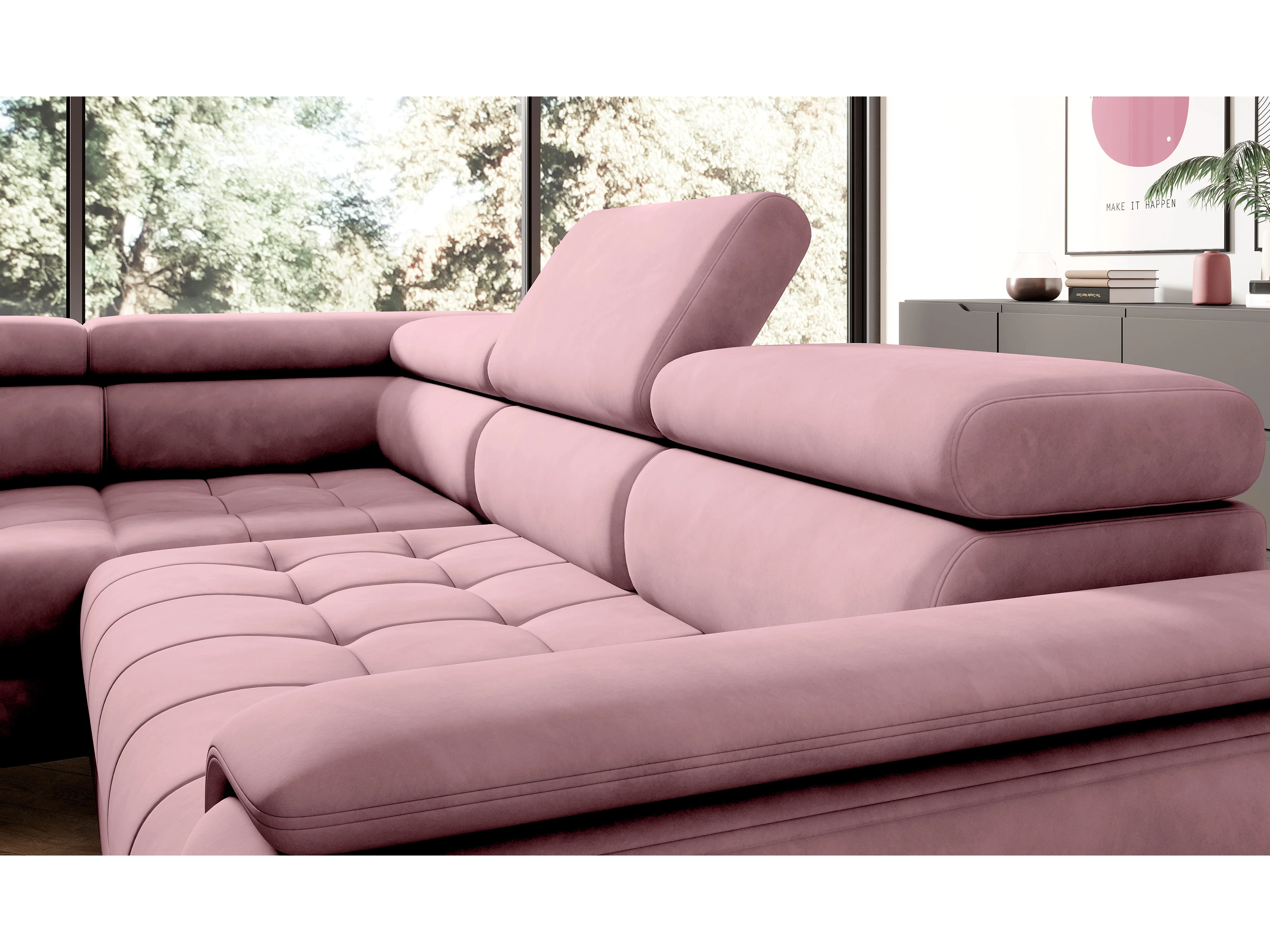 Canapé d'angle U FOCUS XL 352x204 cm, Design moderne, Têtières réglables, Velours luxueux, Option lit, Électrique, Gris clair, Droit