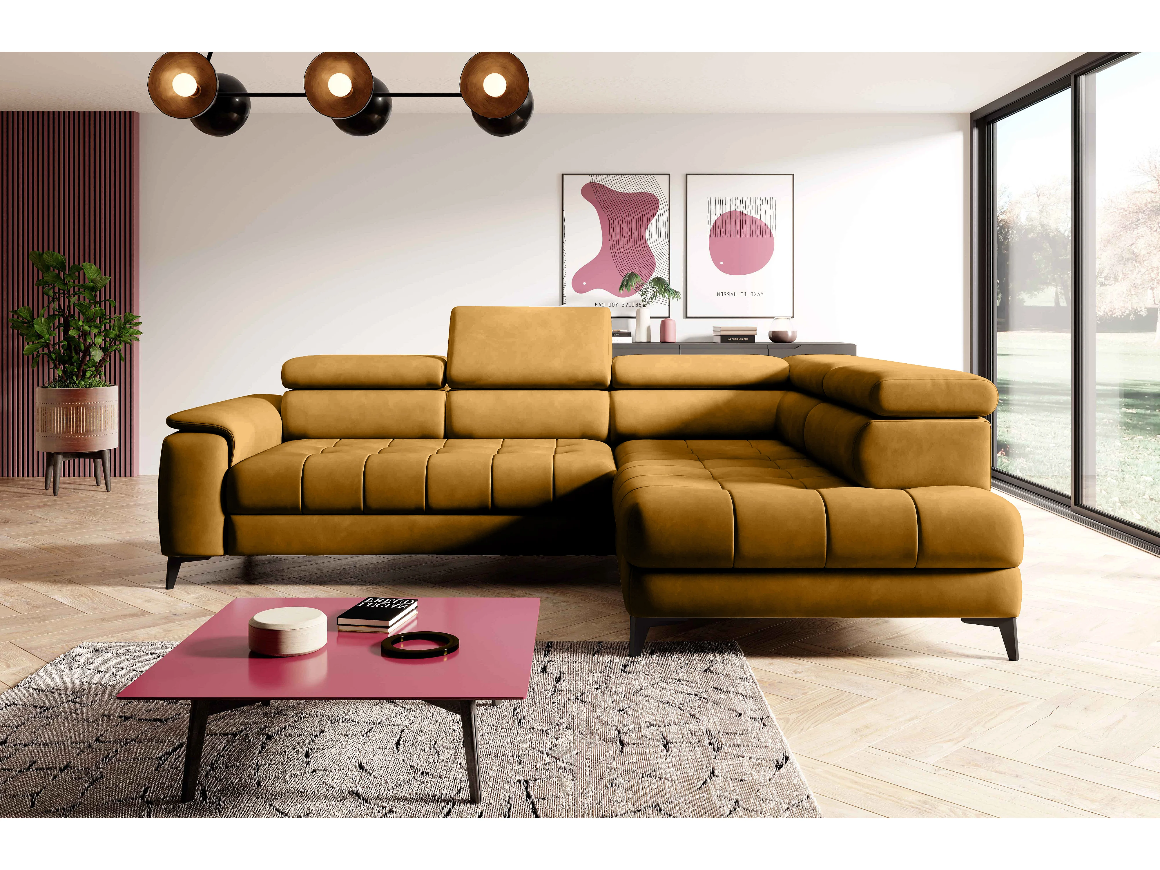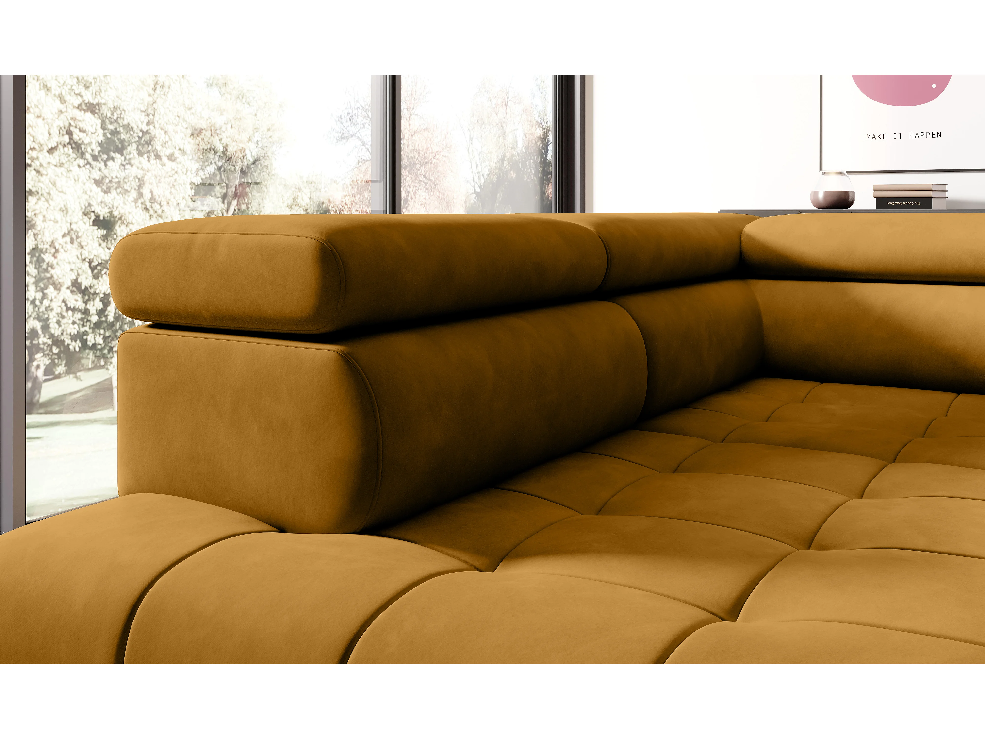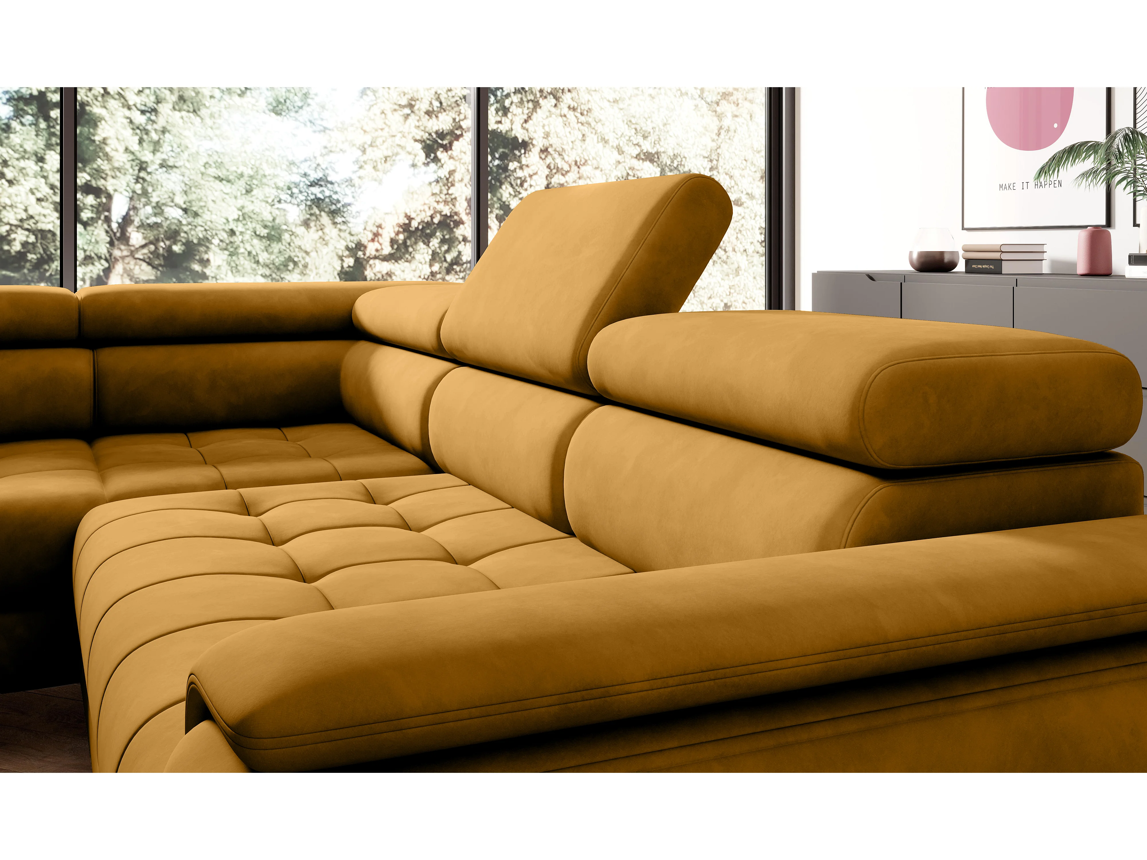 Canapé d'angle U FOCUS XL 352x204 cm, Design moderne, Têtières réglables, Velours luxueux, Option lit, Électrique, Jaune foncé, Droit