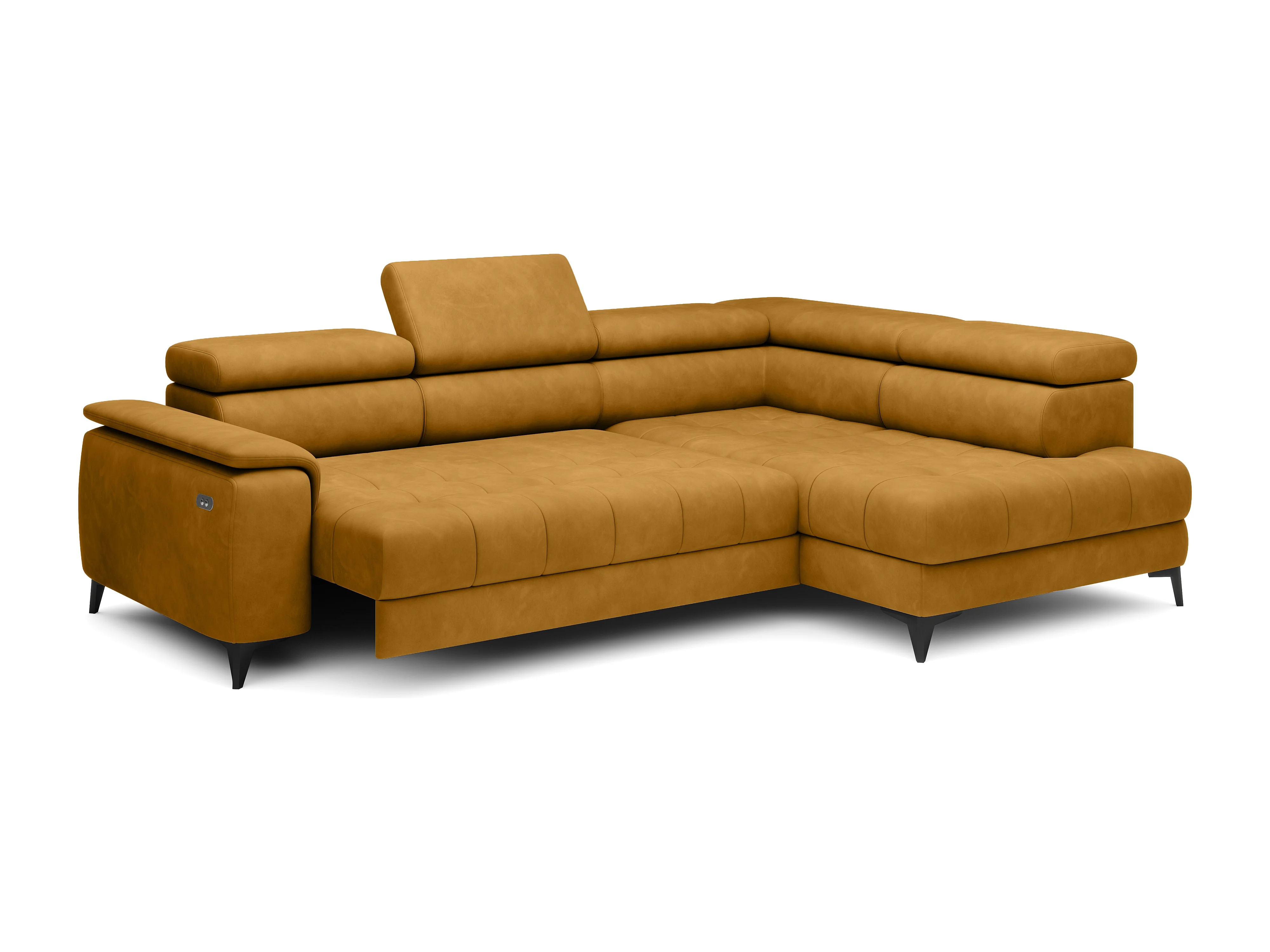Canapé d'angle ADEL convertible avec coffre - Disposition L, pieds métalliques, configuration réglable, doré droit 145x212cm, 257x90x171cm
