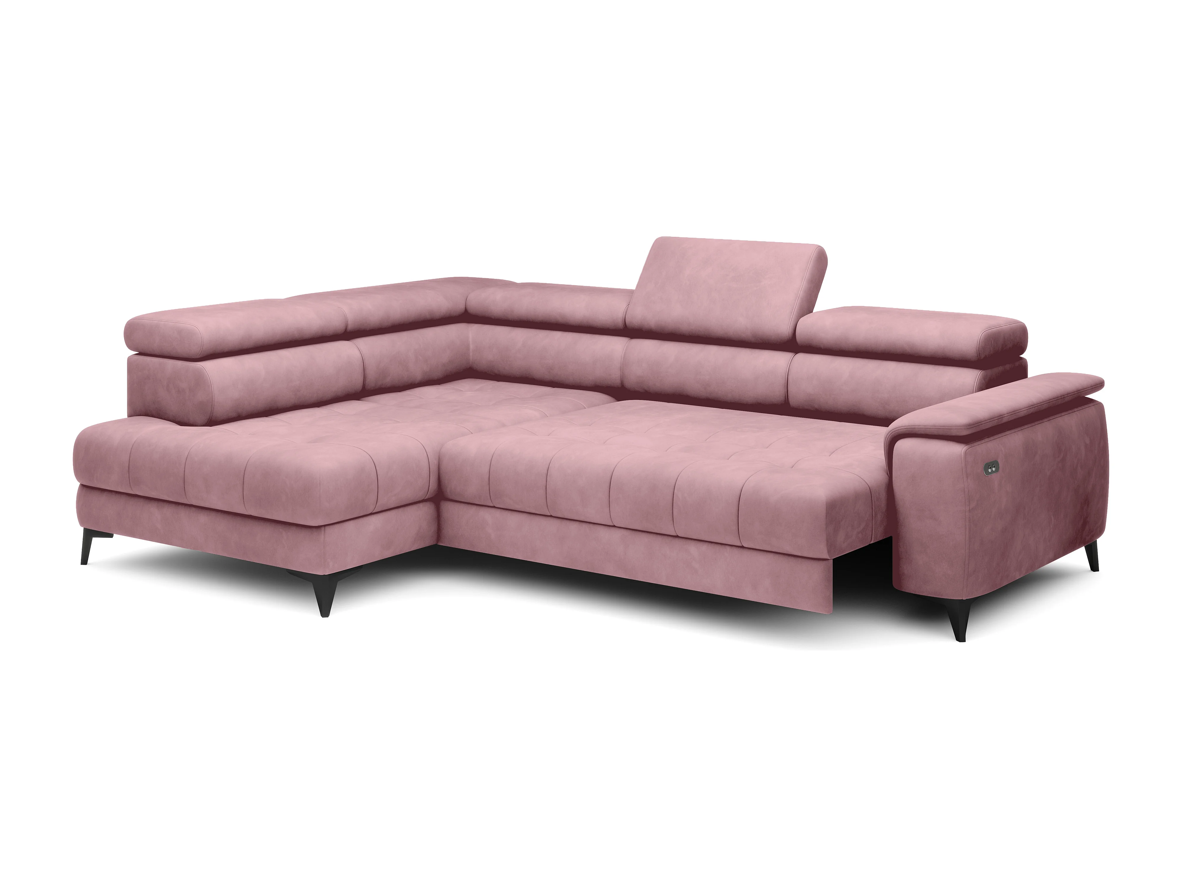 Canapé d'angle lit, têtières réglables, méridienne gauche, 278×197×76/98 cm, tissu argenté