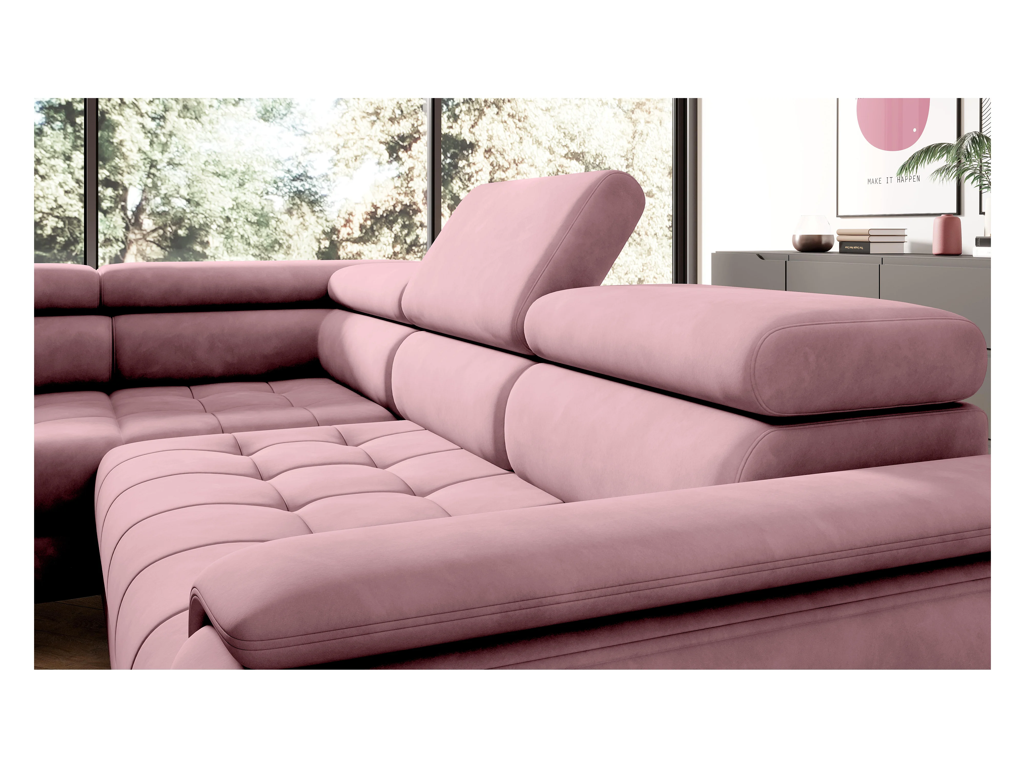 Canapé d'angle U FOCUS XL 352x204 cm, Design moderne, Têtières réglables, Velours luxueux, Option lit, Électrique, Gris clair, Gauche