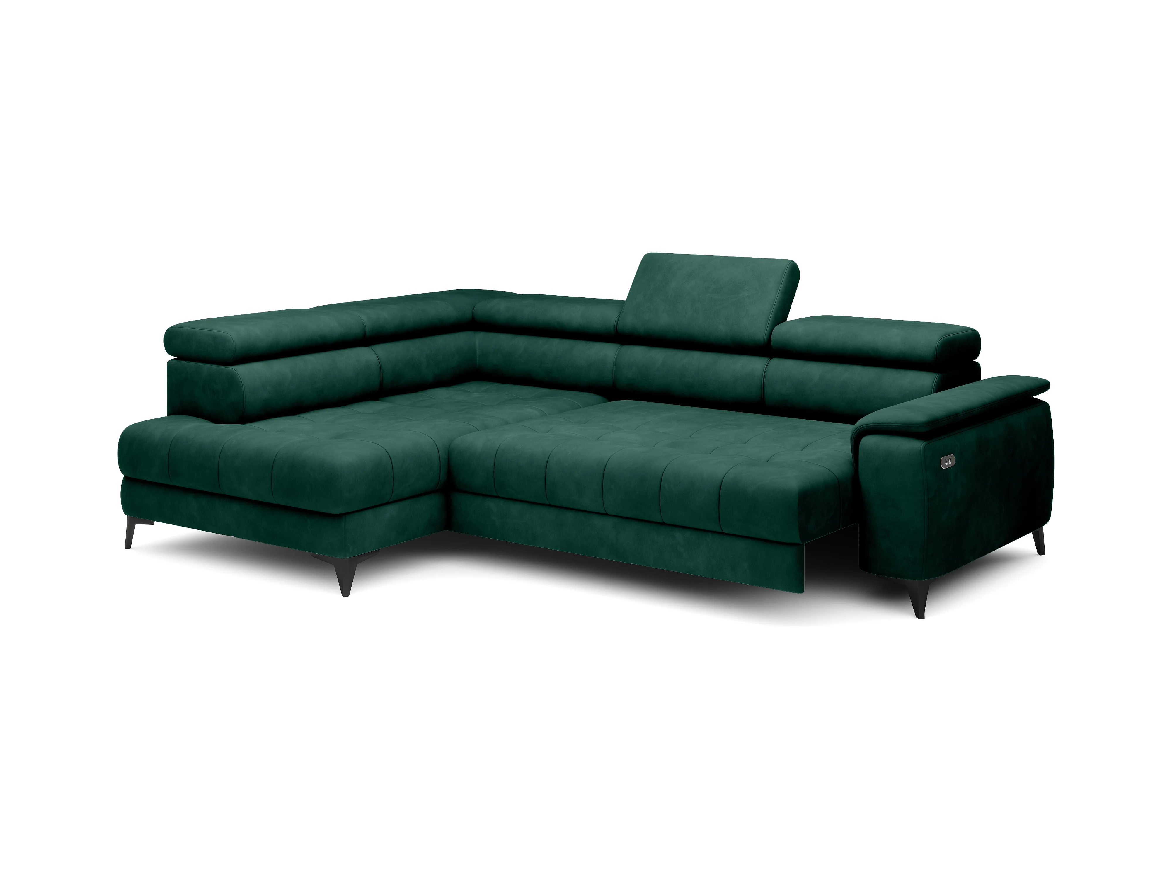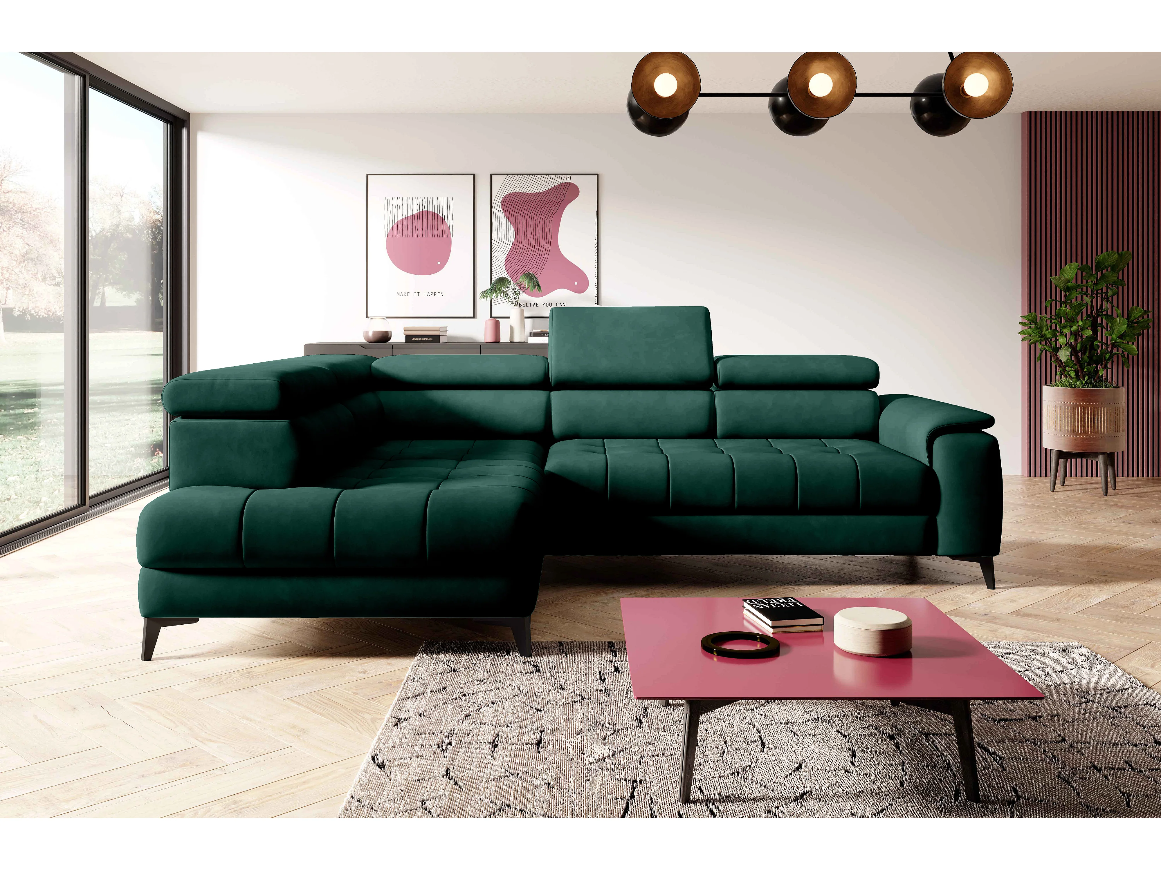 Canapé d'angle ILUSIO L avec fonction sommeil, 250x205cm, dossier réglable, matériaux de haute qualité, couleur vert foncé, gauche