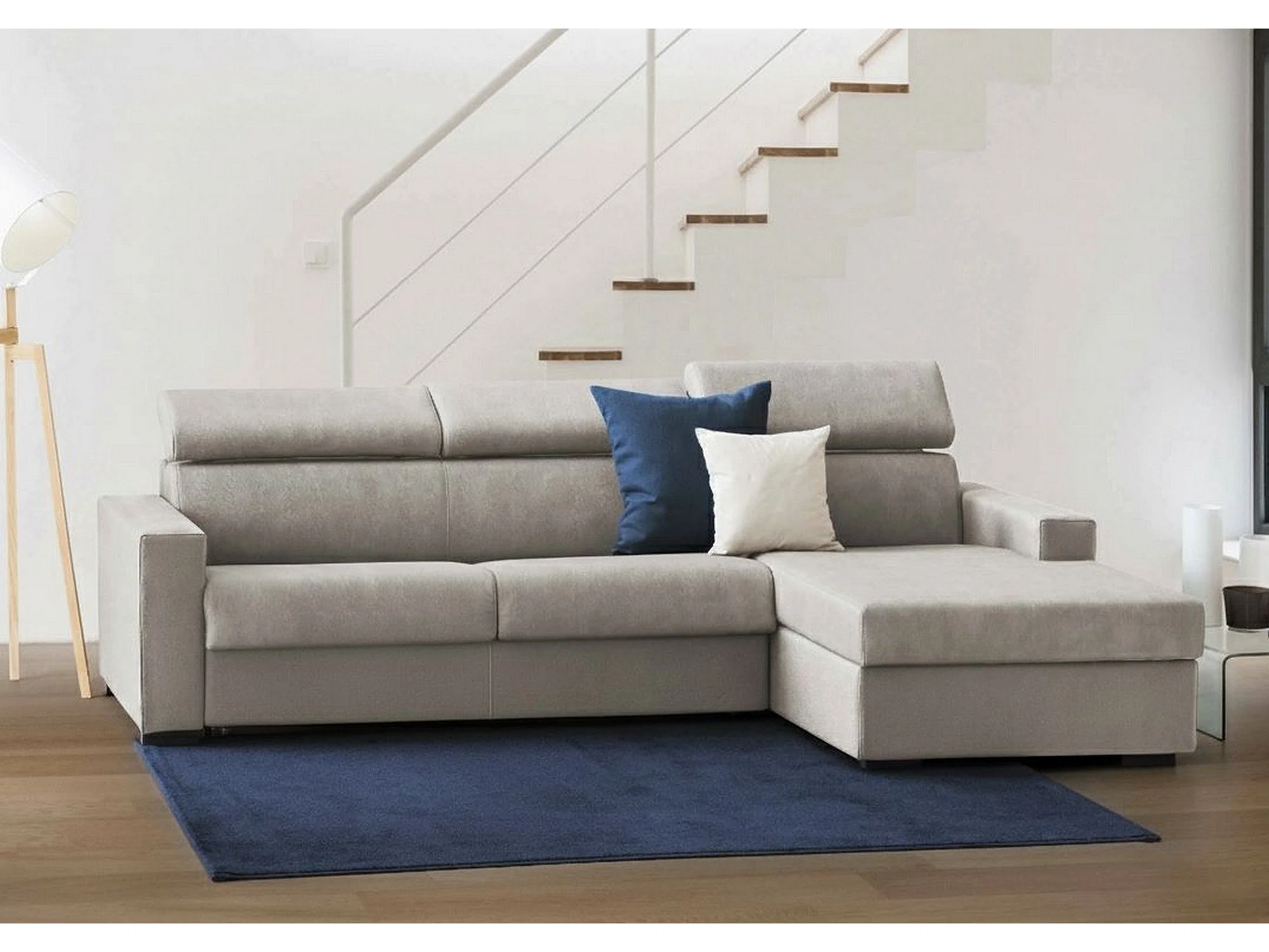 Sofá fijo con península Mikaela, sofá esquinero con chaise longue derecho de tela, reposabrazos finos, 100% Made in Italy, 280x95h85 cm, Gris tórtola