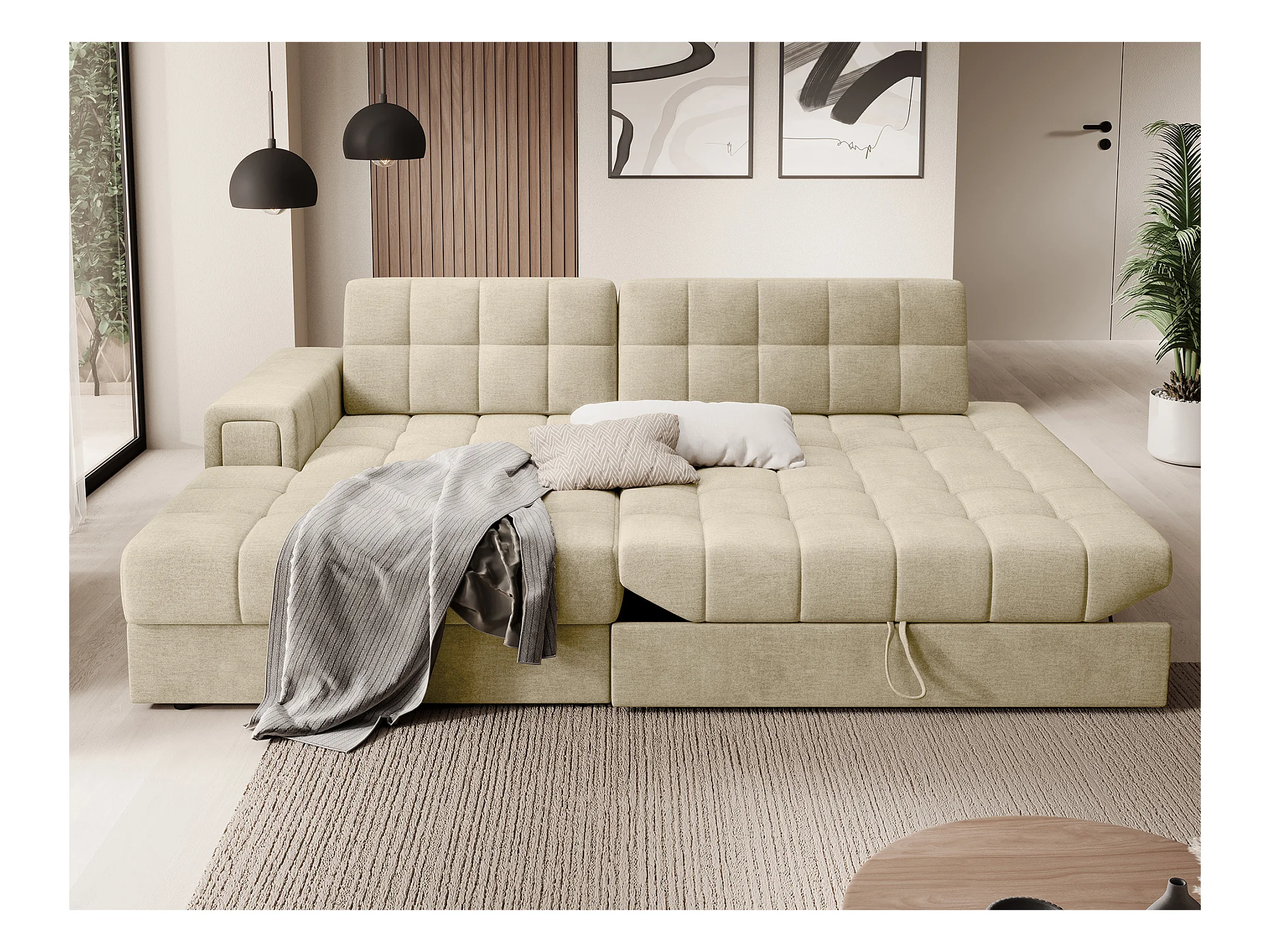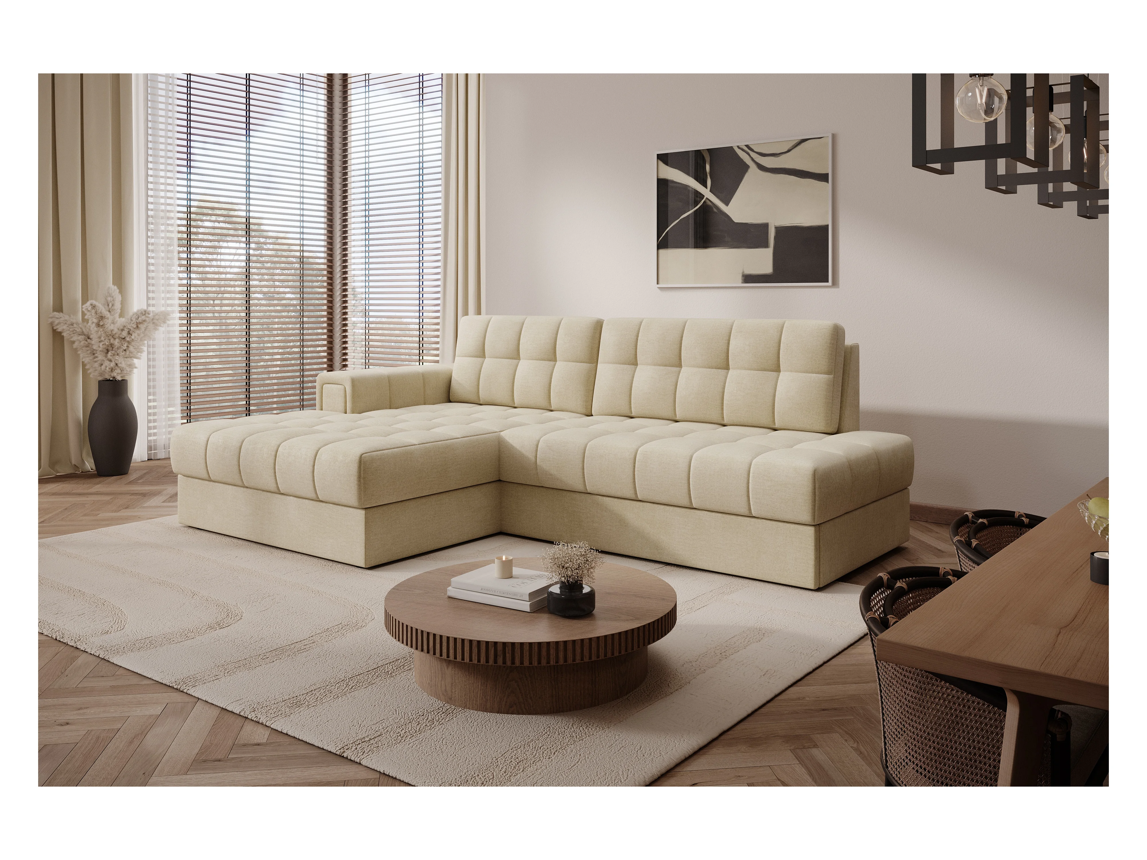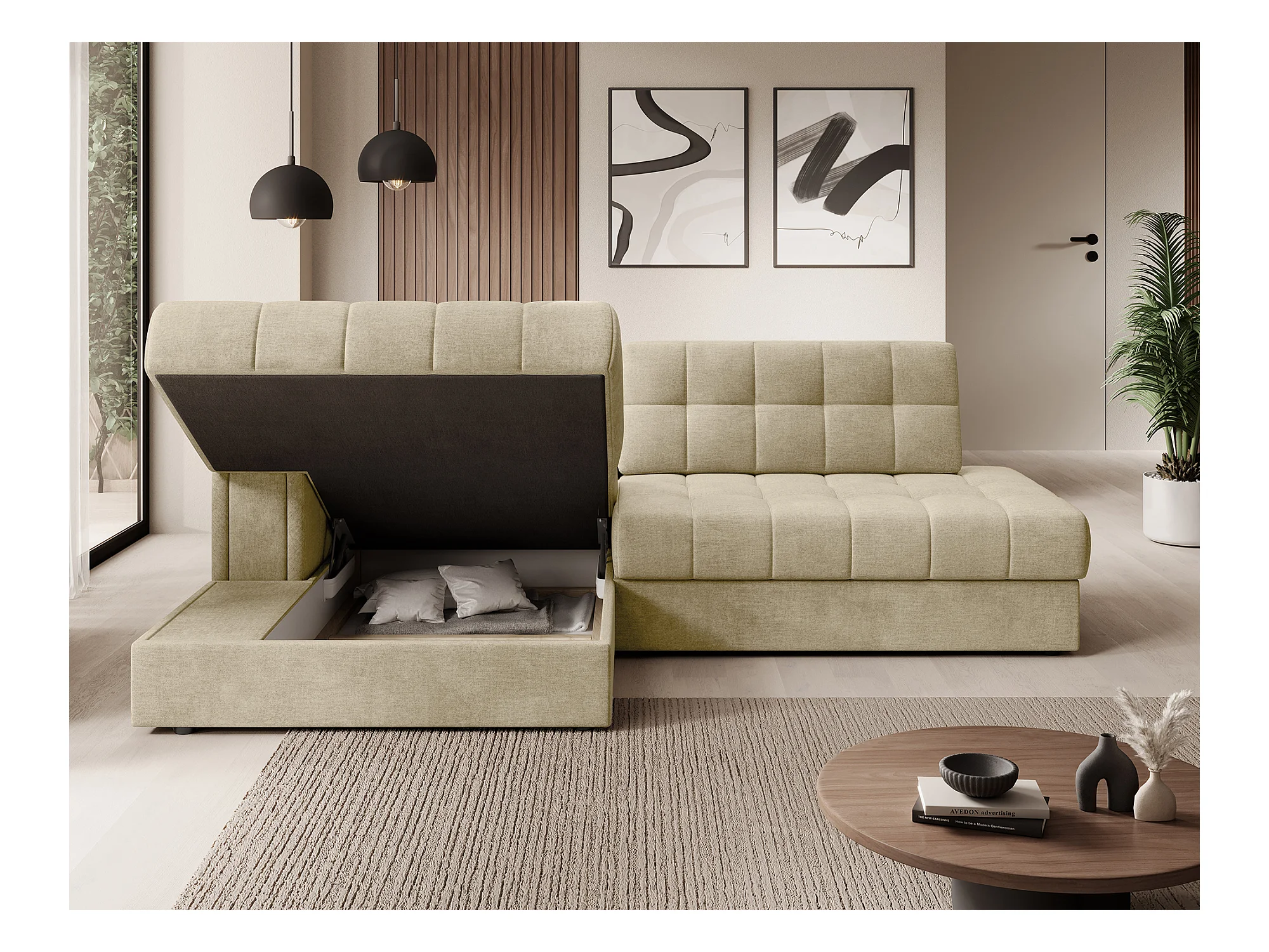 Canapé-lit en L Carlos, canapé d'angle avec coffre de lit et fonction couchage, tissu Salvador Left Beige
