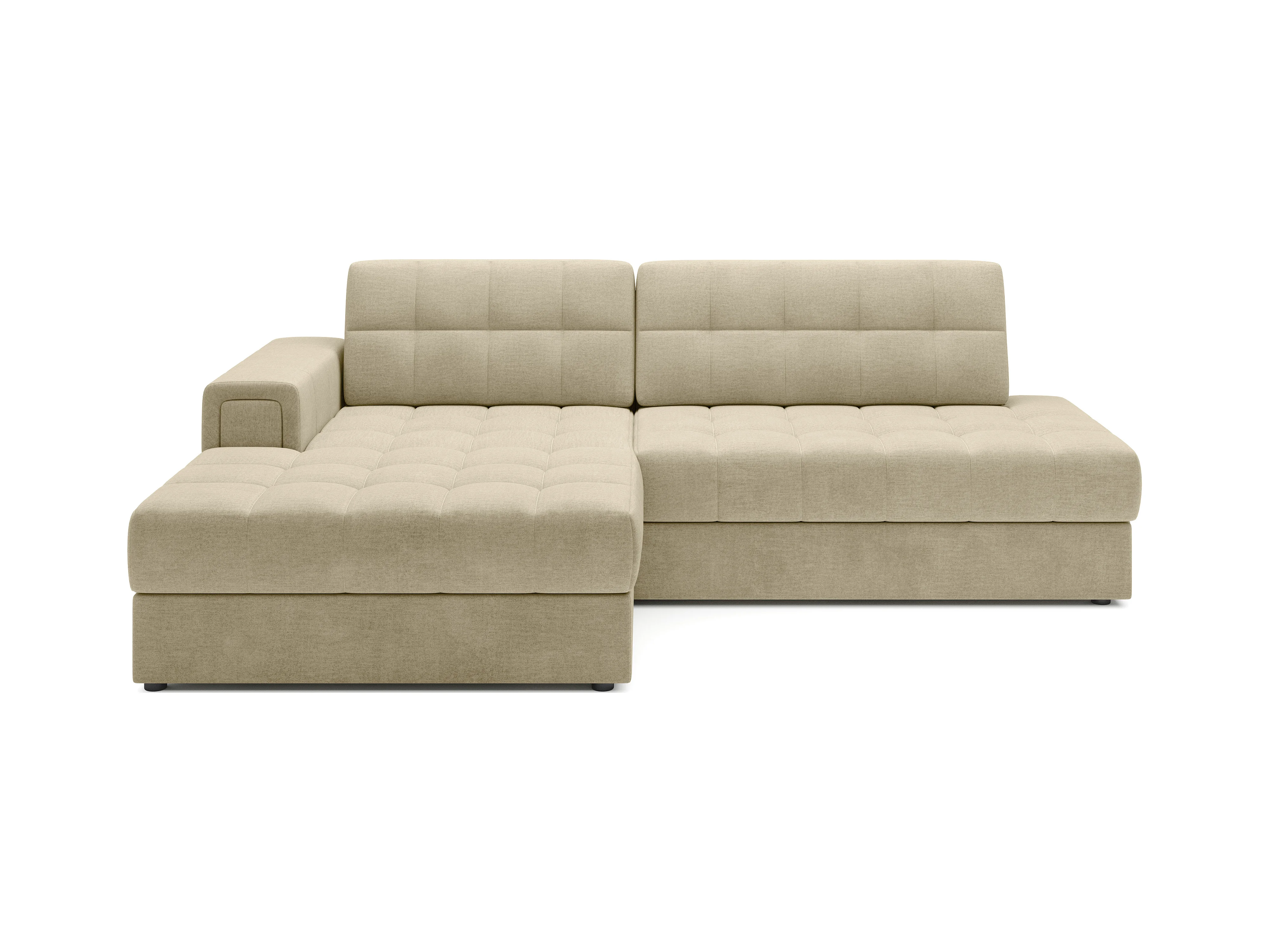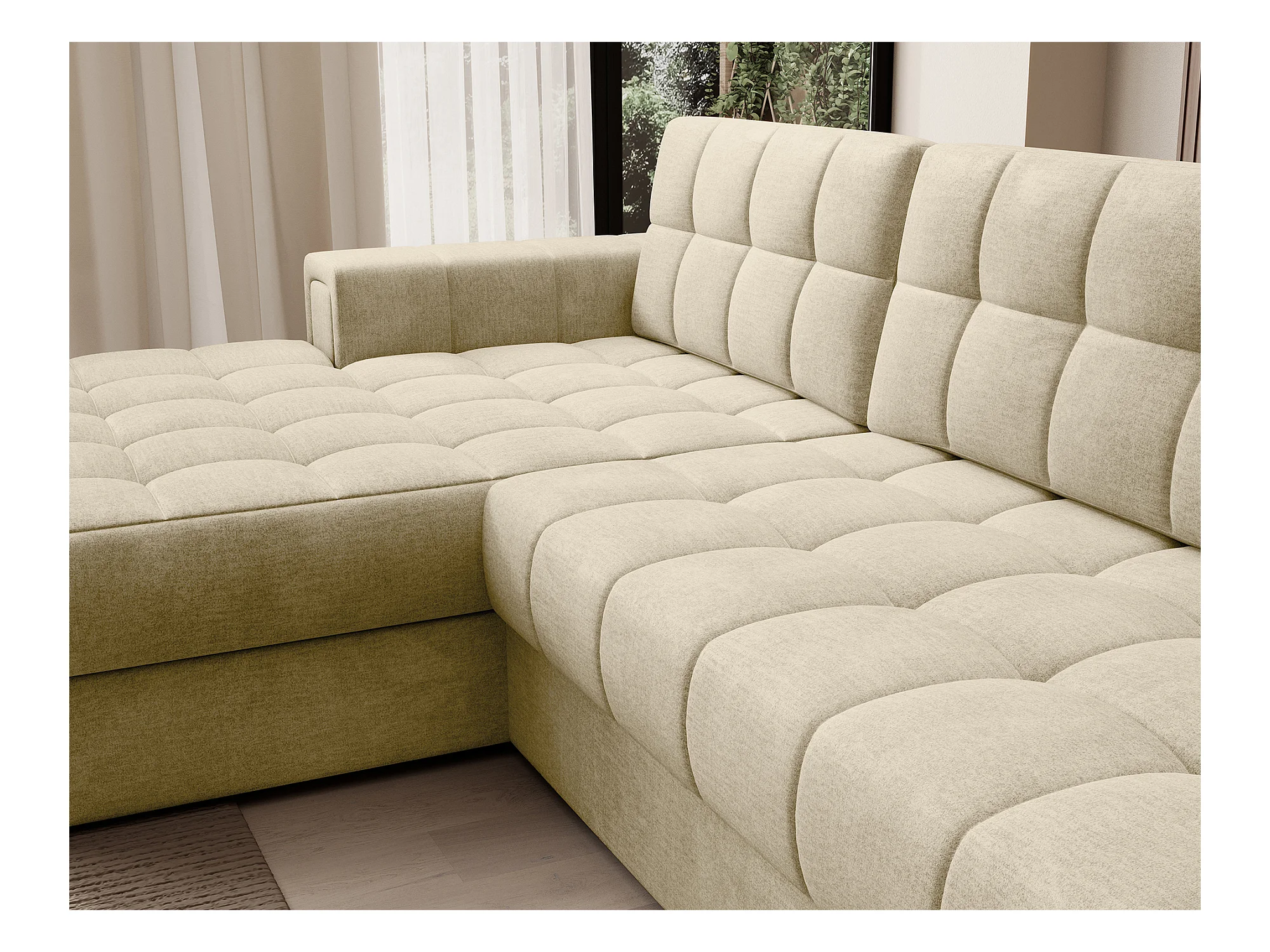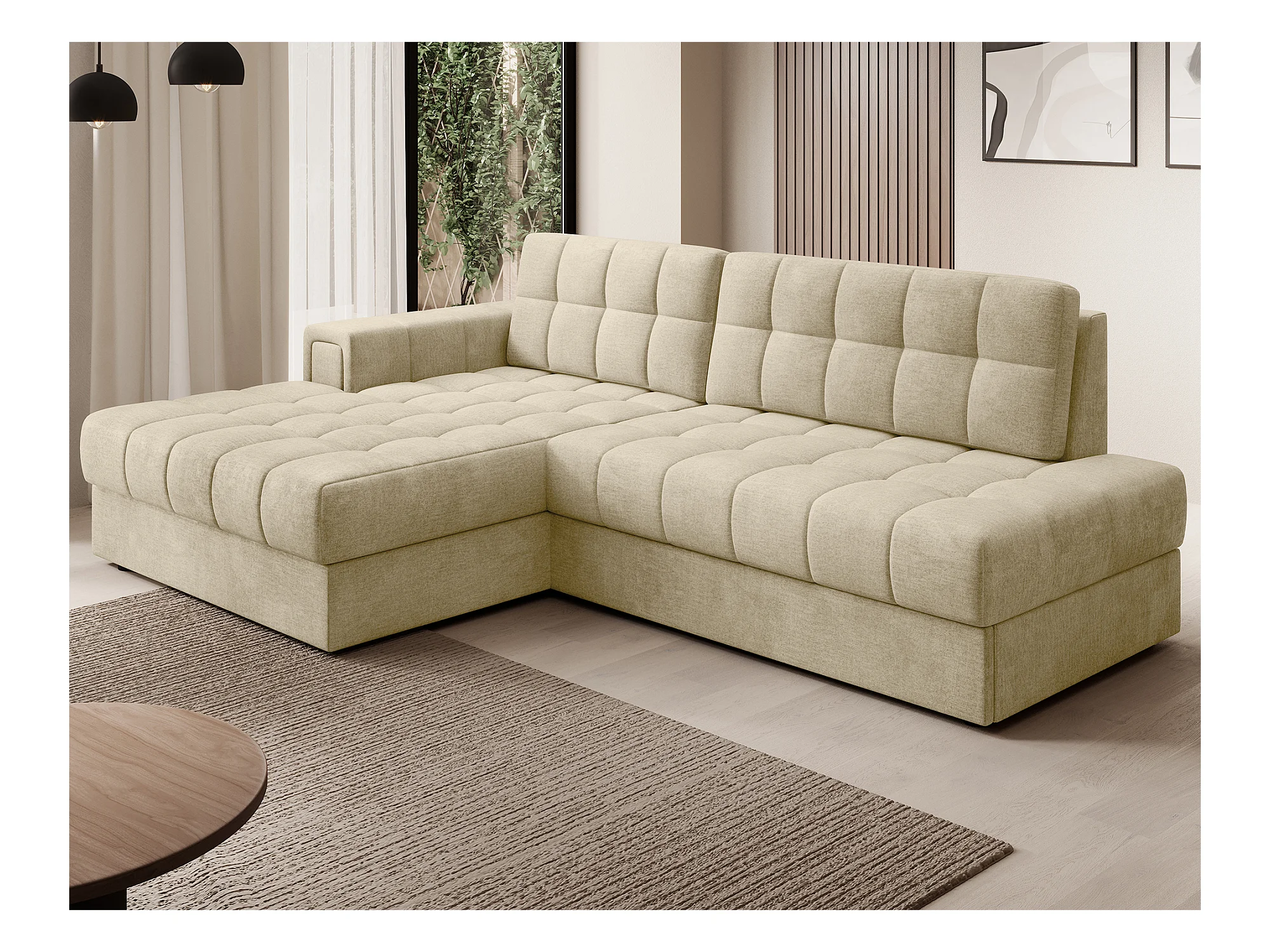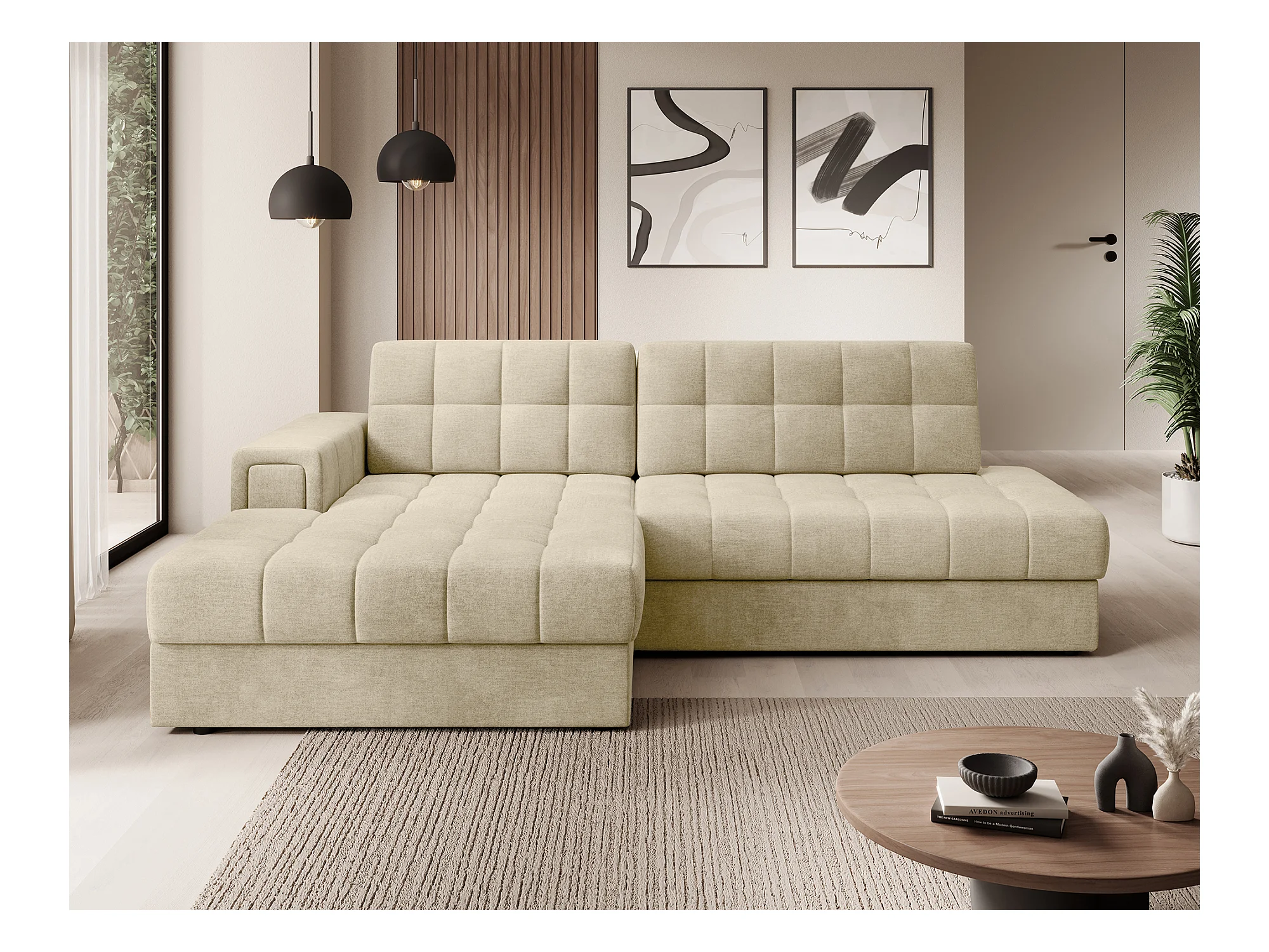 Canapé-lit en L Carlos, canapé d'angle avec coffre de lit et fonction couchage, tissu Salvador Left Beige