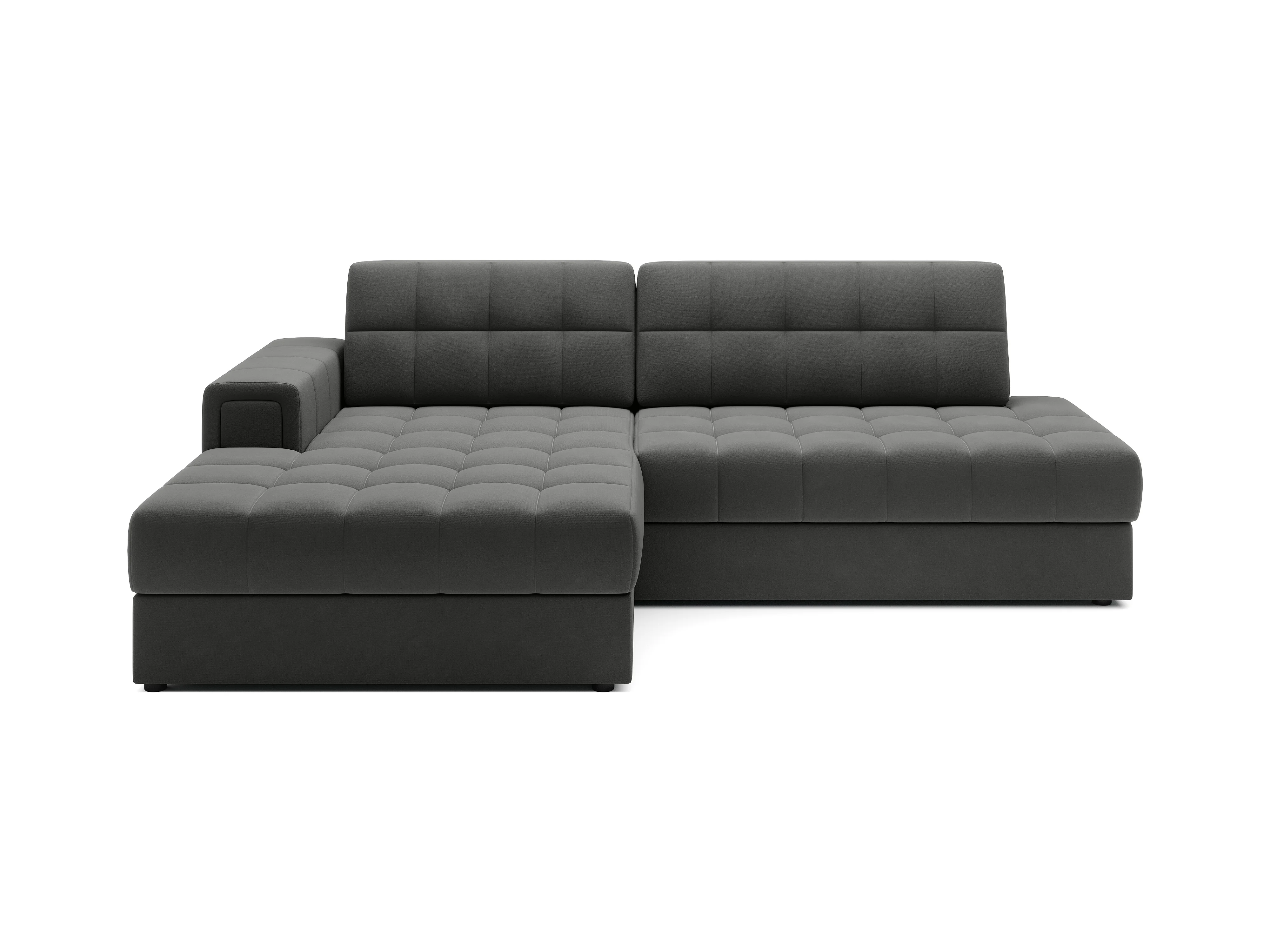Canapé d'angle KELLY velours - Rangement et convertible-Gris-Méridienne A gauche