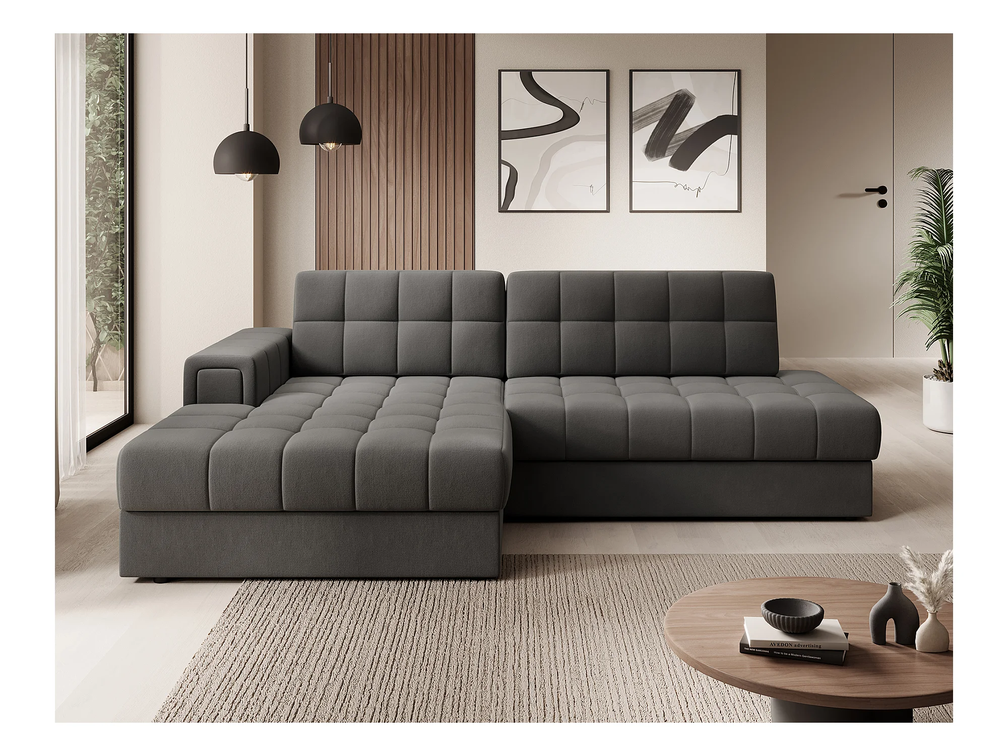 Canapé-lit en L Carlos, canapé d'angle avec coffre de lit et fonction couchage, tissu Salvador Left Grey