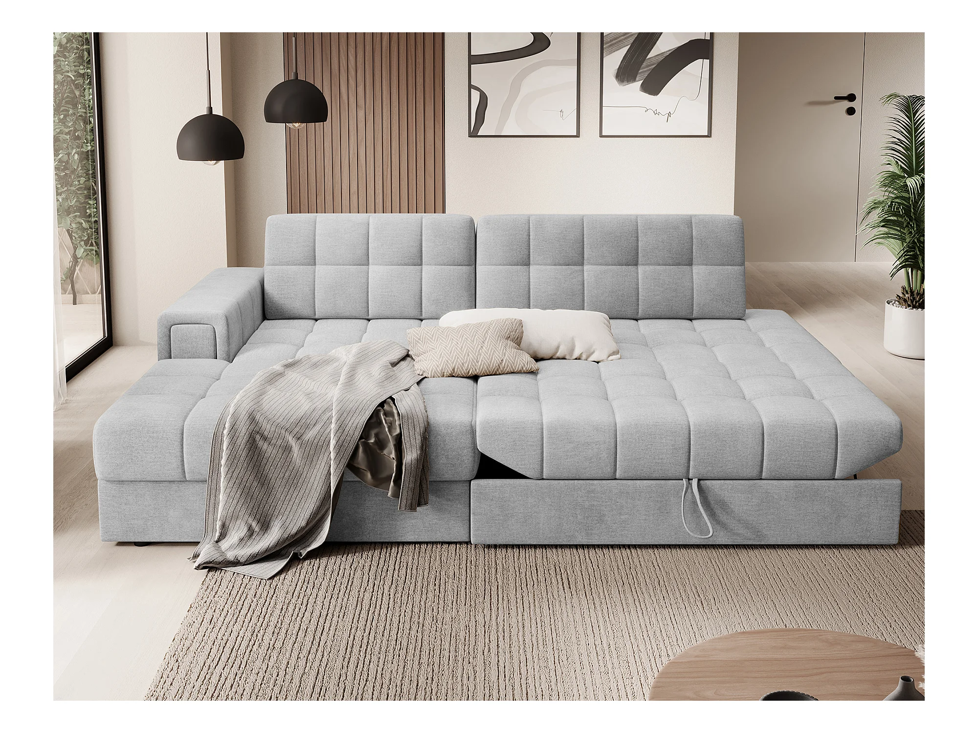 Canapé d'angle avec fonction couchage et coffre de lit, canapé d'angle en L, canapé d'angle en L BEST tissu Abriamo gris clair droite
