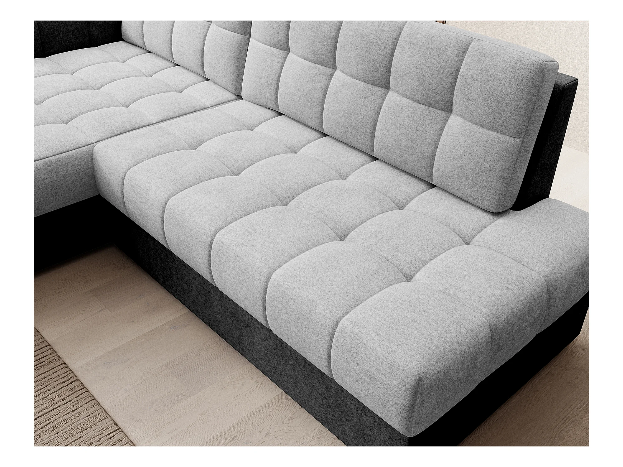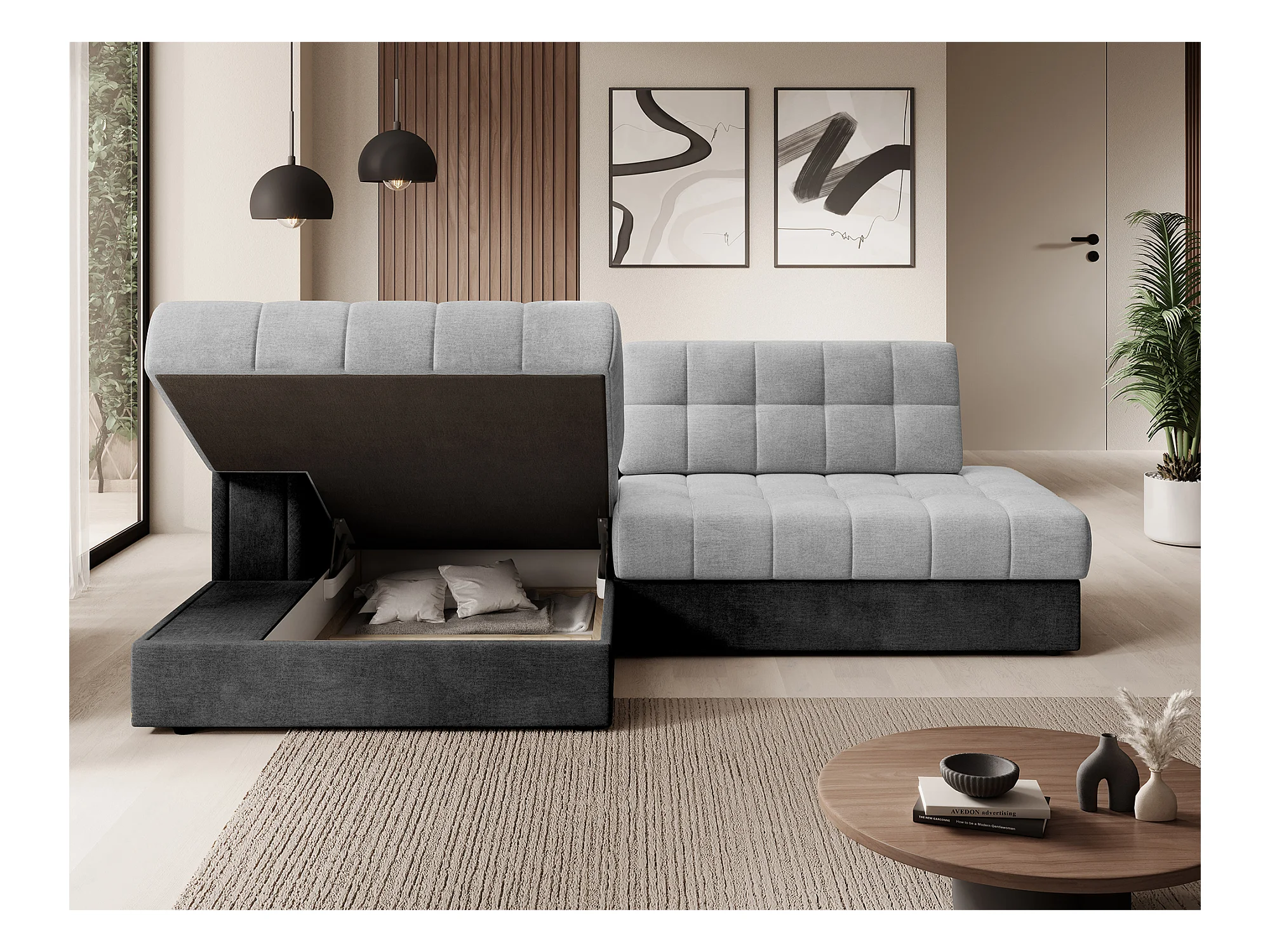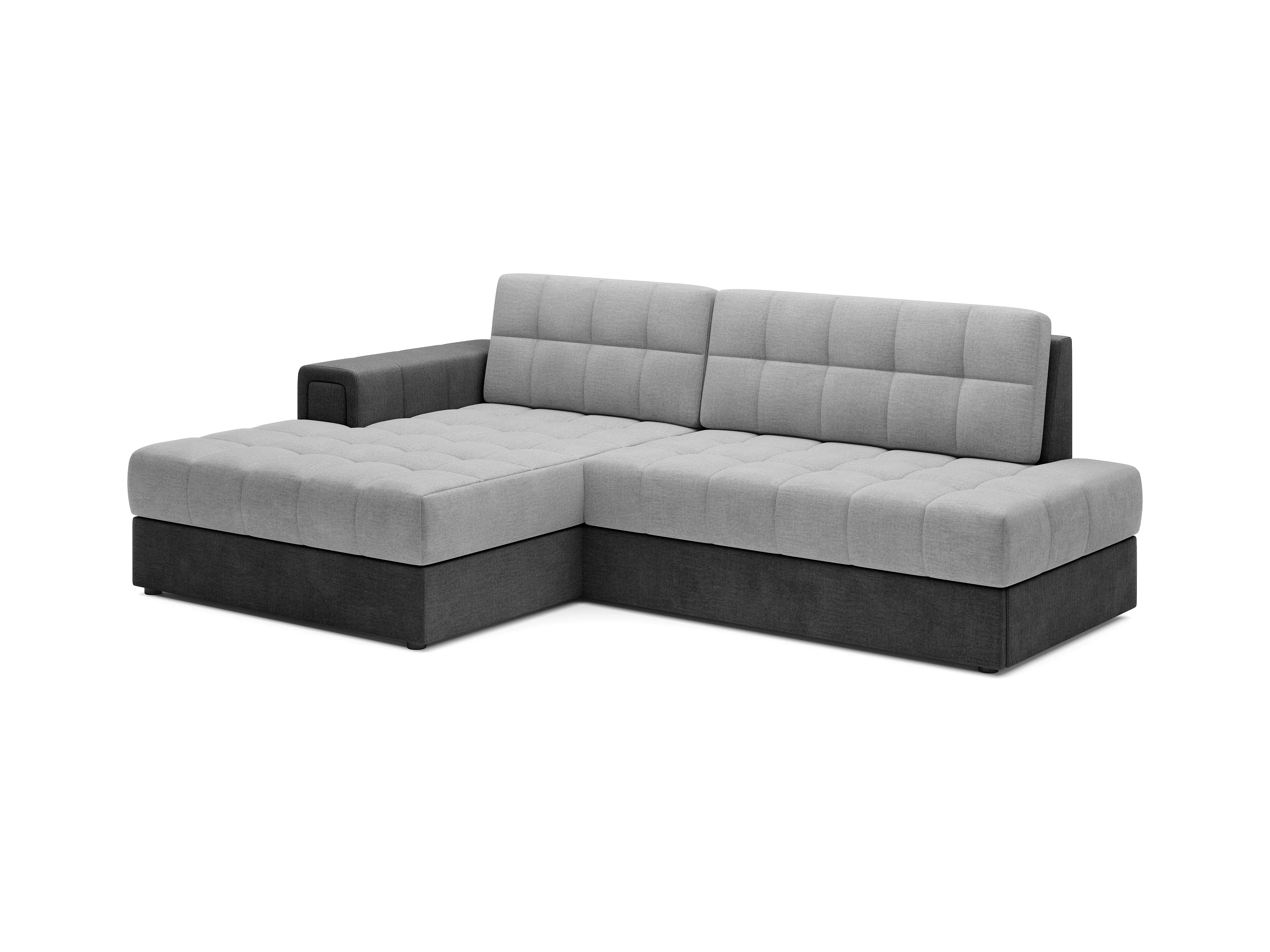 Canapé d'angle avec fonction couchage et coffre de lit, canapé d'angle en L, canapé d'angle en L BEST tissu Abriamo Graphite Droite