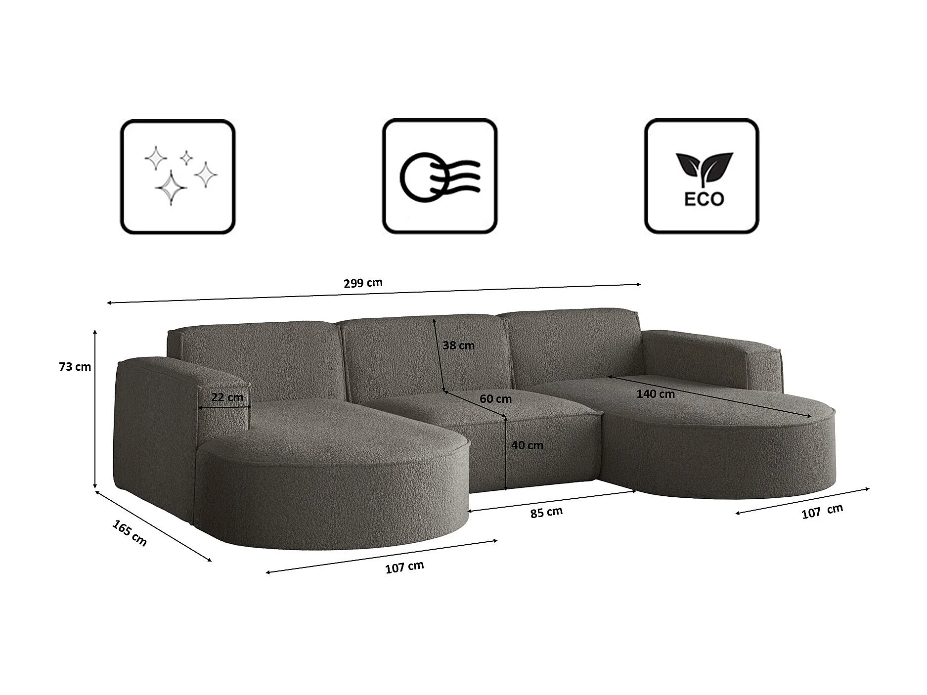 Canapé d'angle Modena en U, tissu Poso, gris foncé