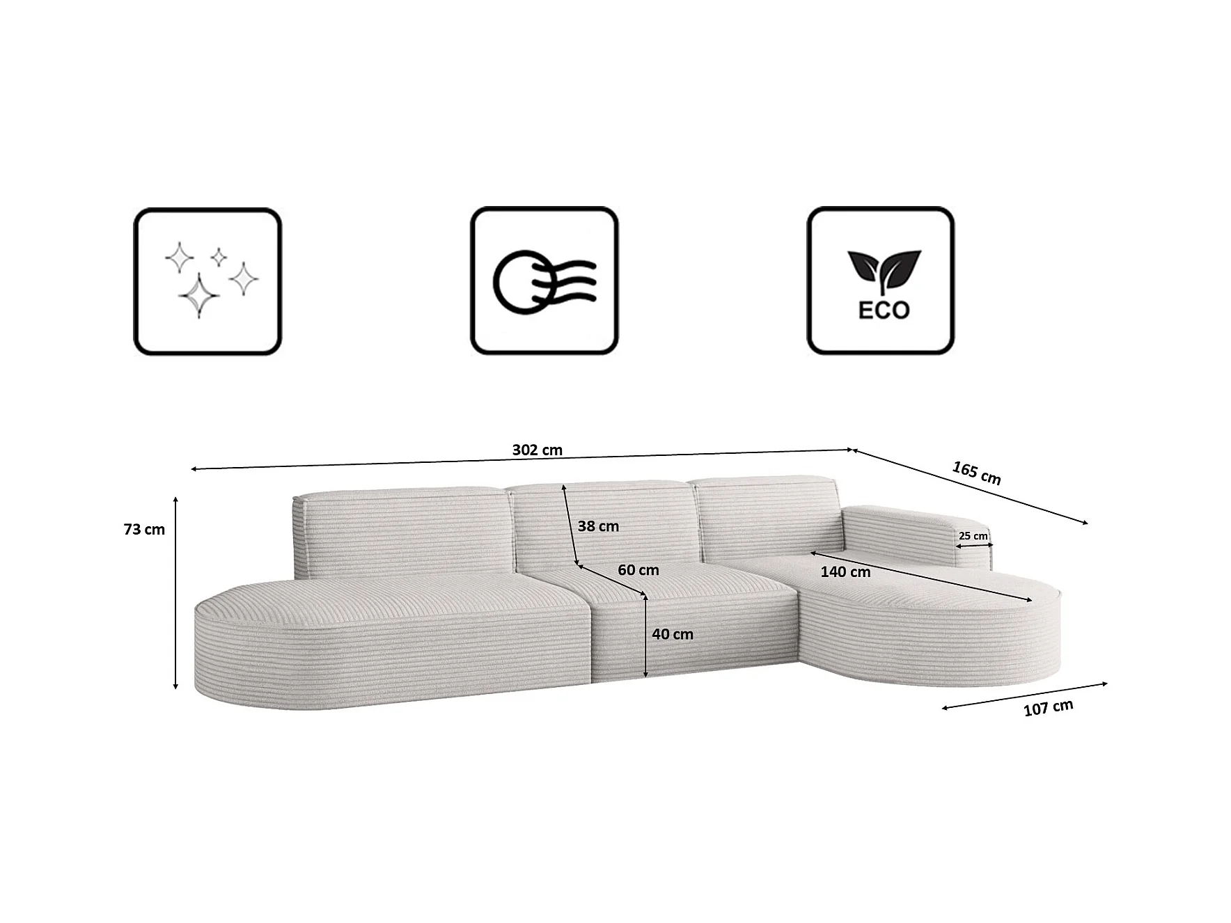 Canapé d'angle Modena en L, tissu Poso, écru, droit