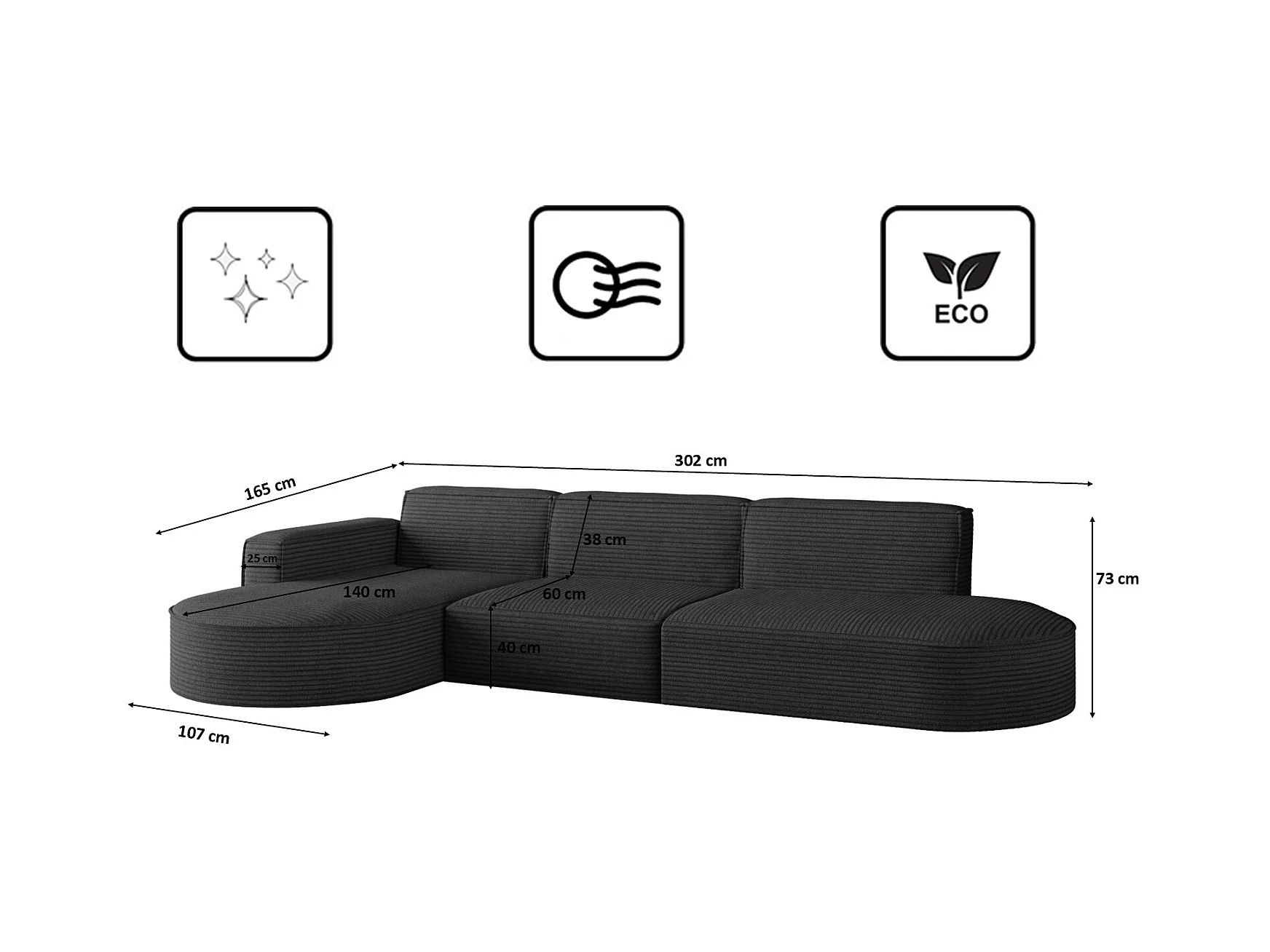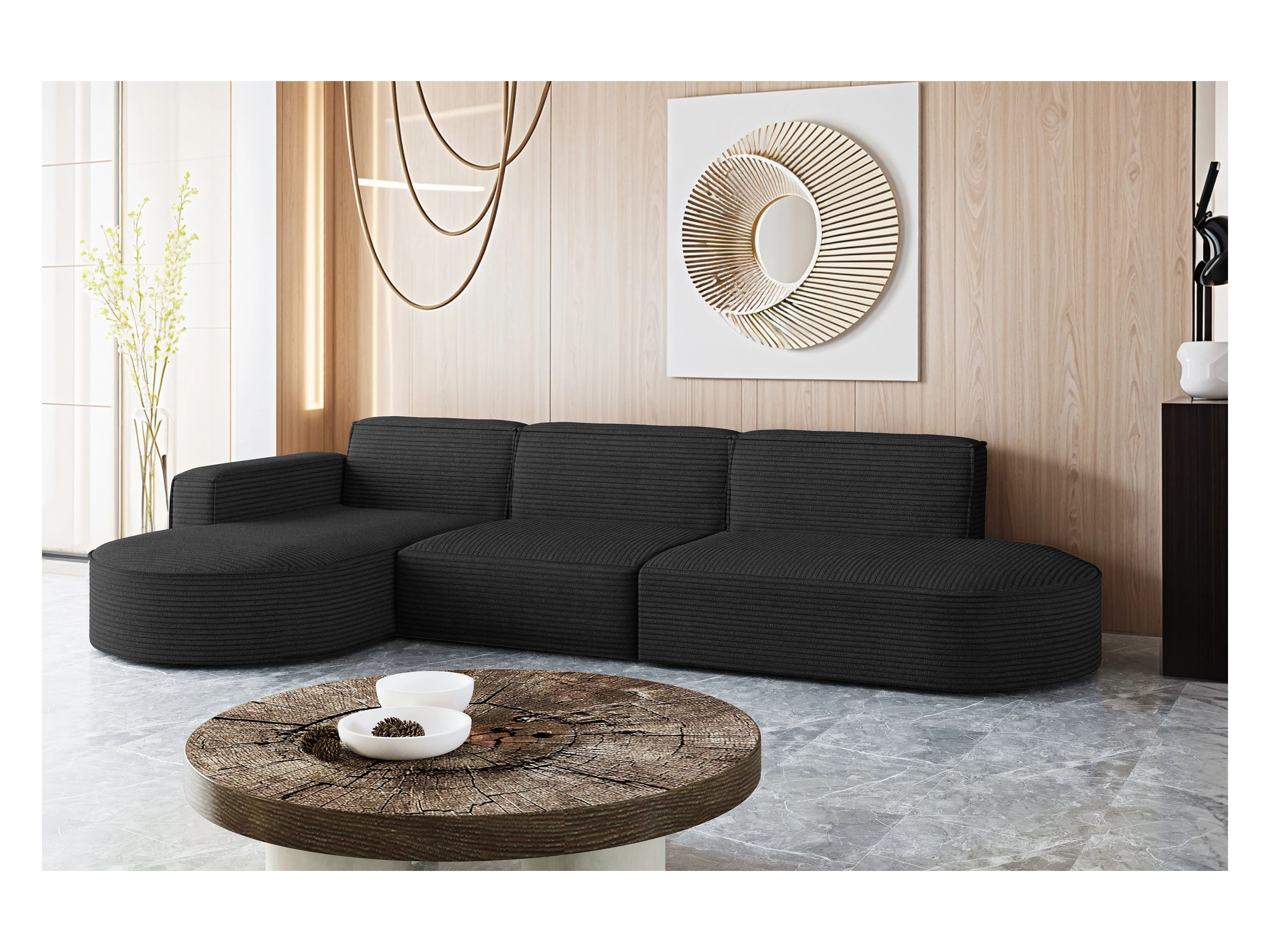 Canapé d'angle Modena en L, tissu Poso, noir, gauche