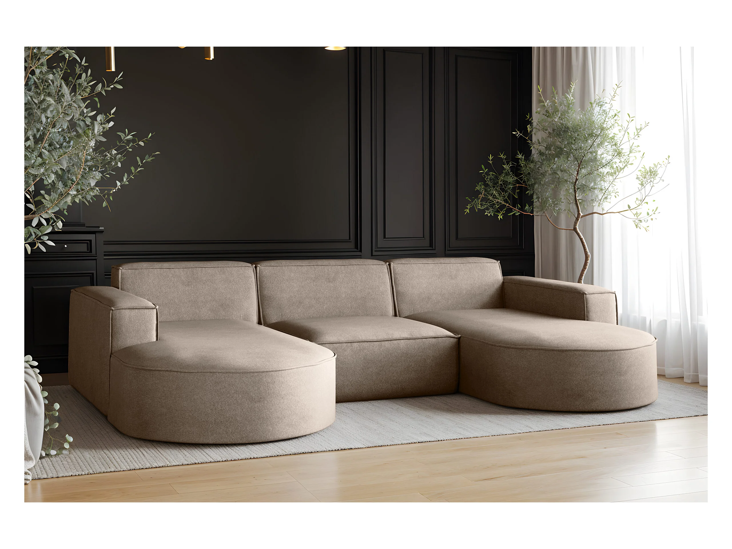 Canapé d'angle Modena en U, canapé élégant et moderne en tissu Salvador beige foncé