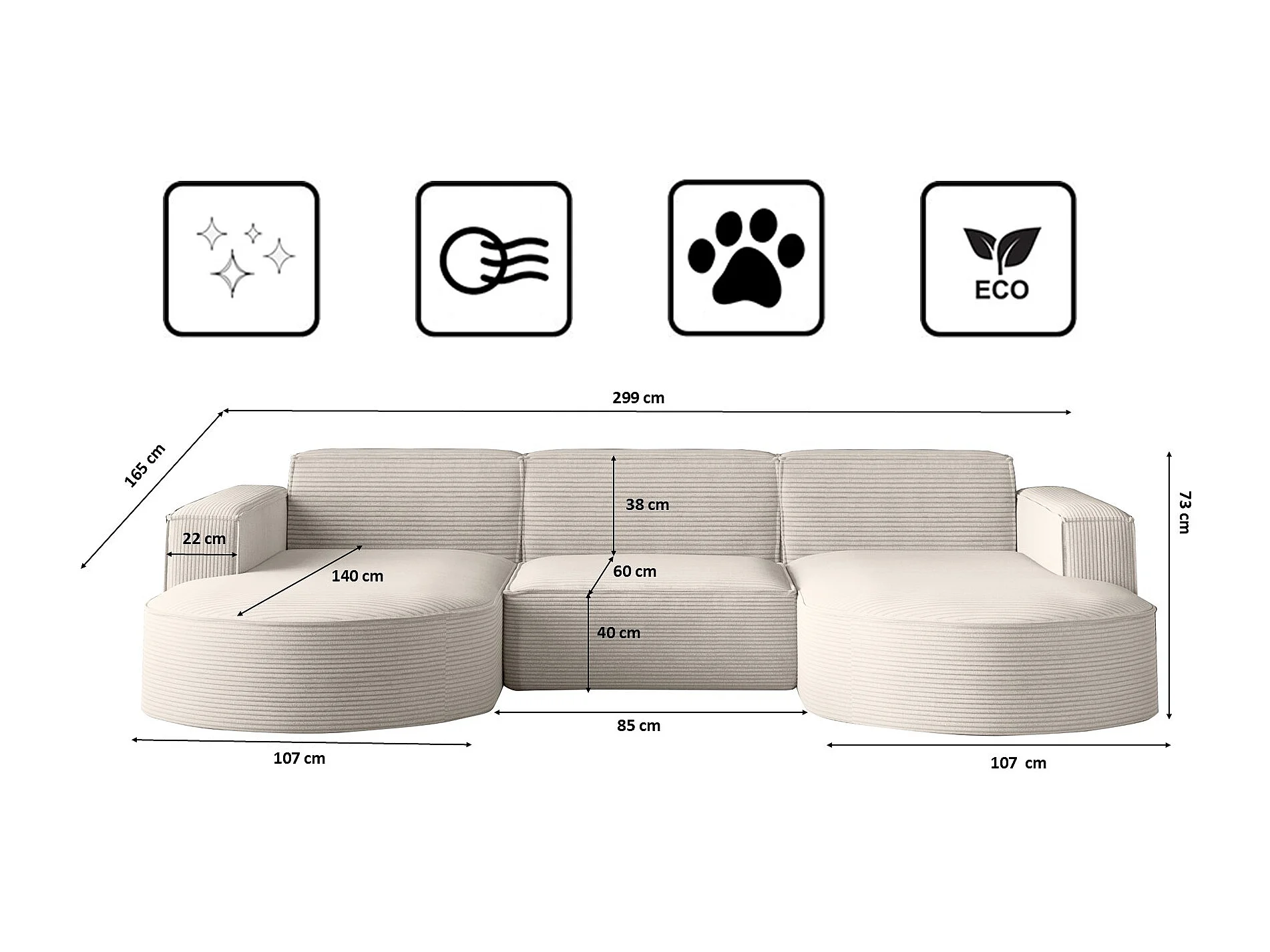 Canapé d'angle, Modena U XL, tissu Poso, écru