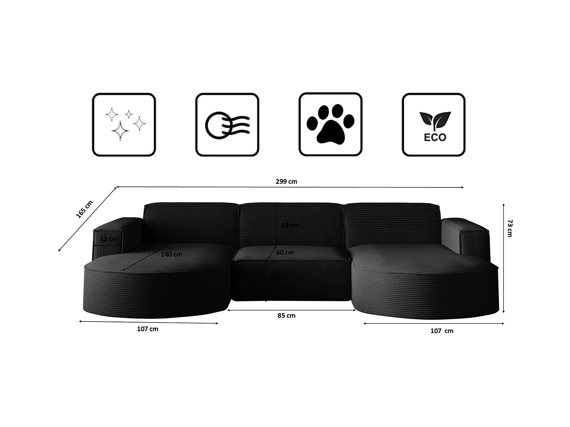 Canapé d'angle PULA, tissu Perfect Harmony, noir