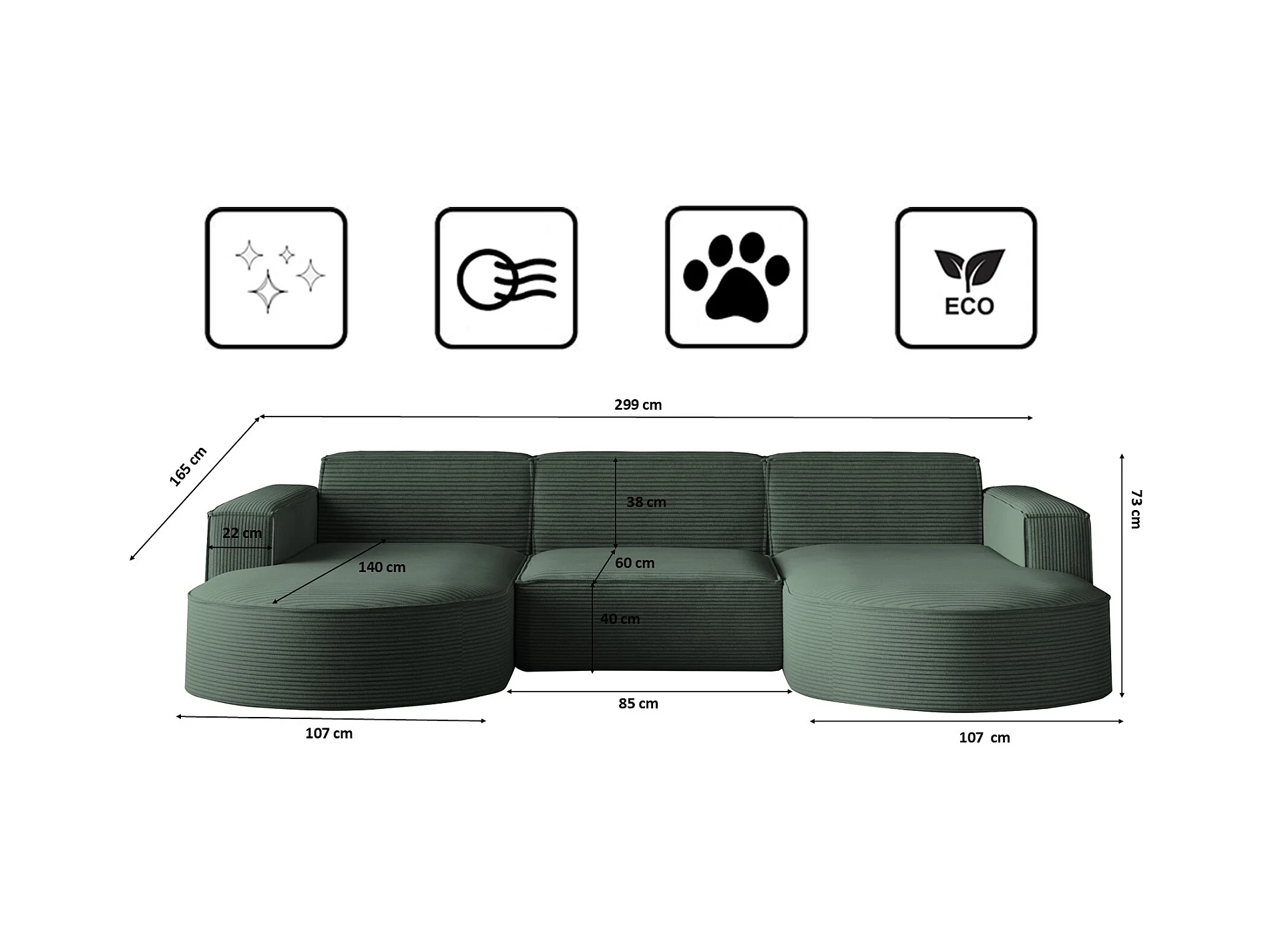 Canapé d'angle PULA, tissu Perfect Harmony, vert