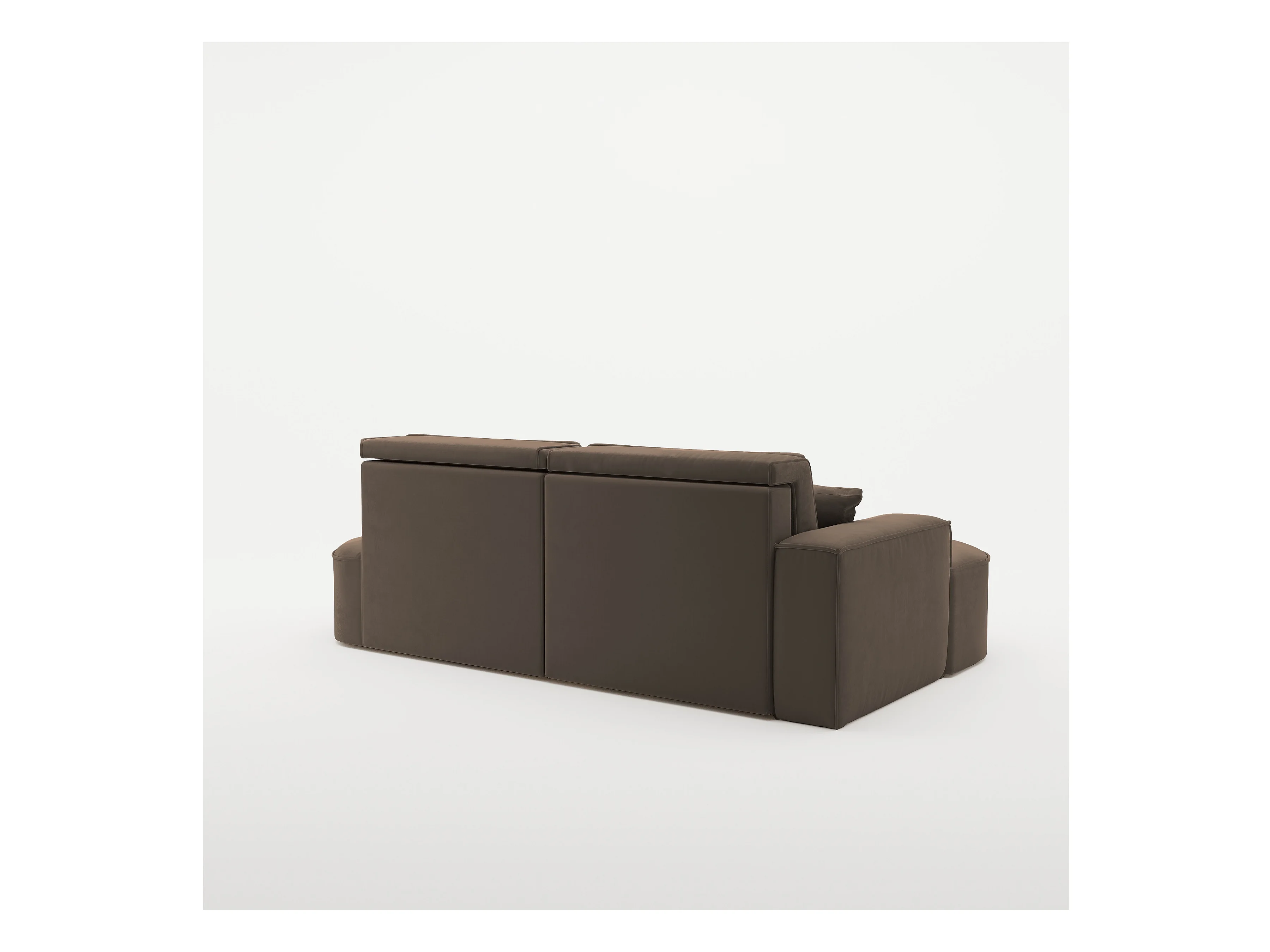 Canapé panoramique convertible LEVANO tissu - Rangement et appuie-têtes réglables-Marron-Coffre à gauche