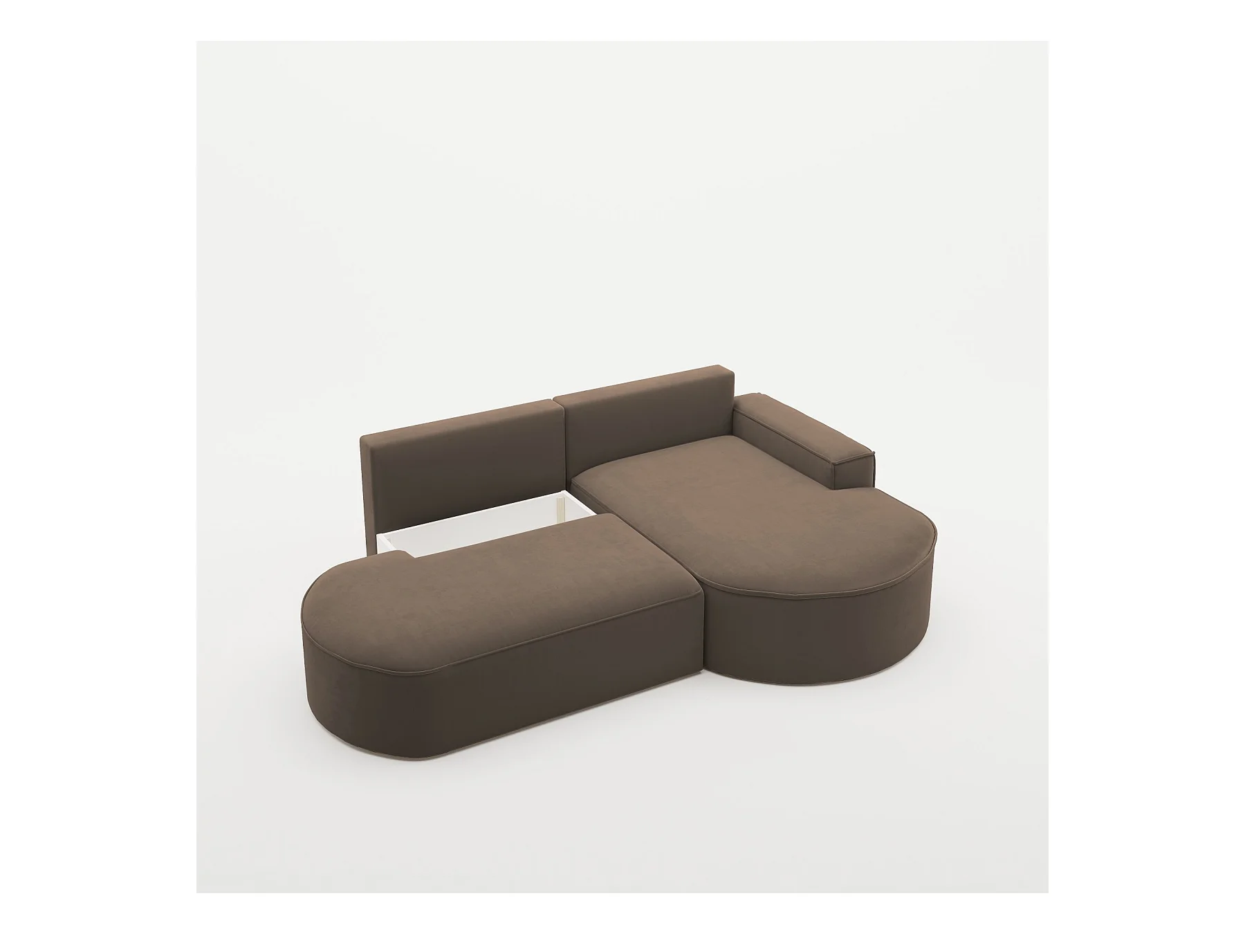 Canapé panoramique convertible LEVANO tissu - Rangement et appuie-têtes réglables-Marron-Coffre à droite