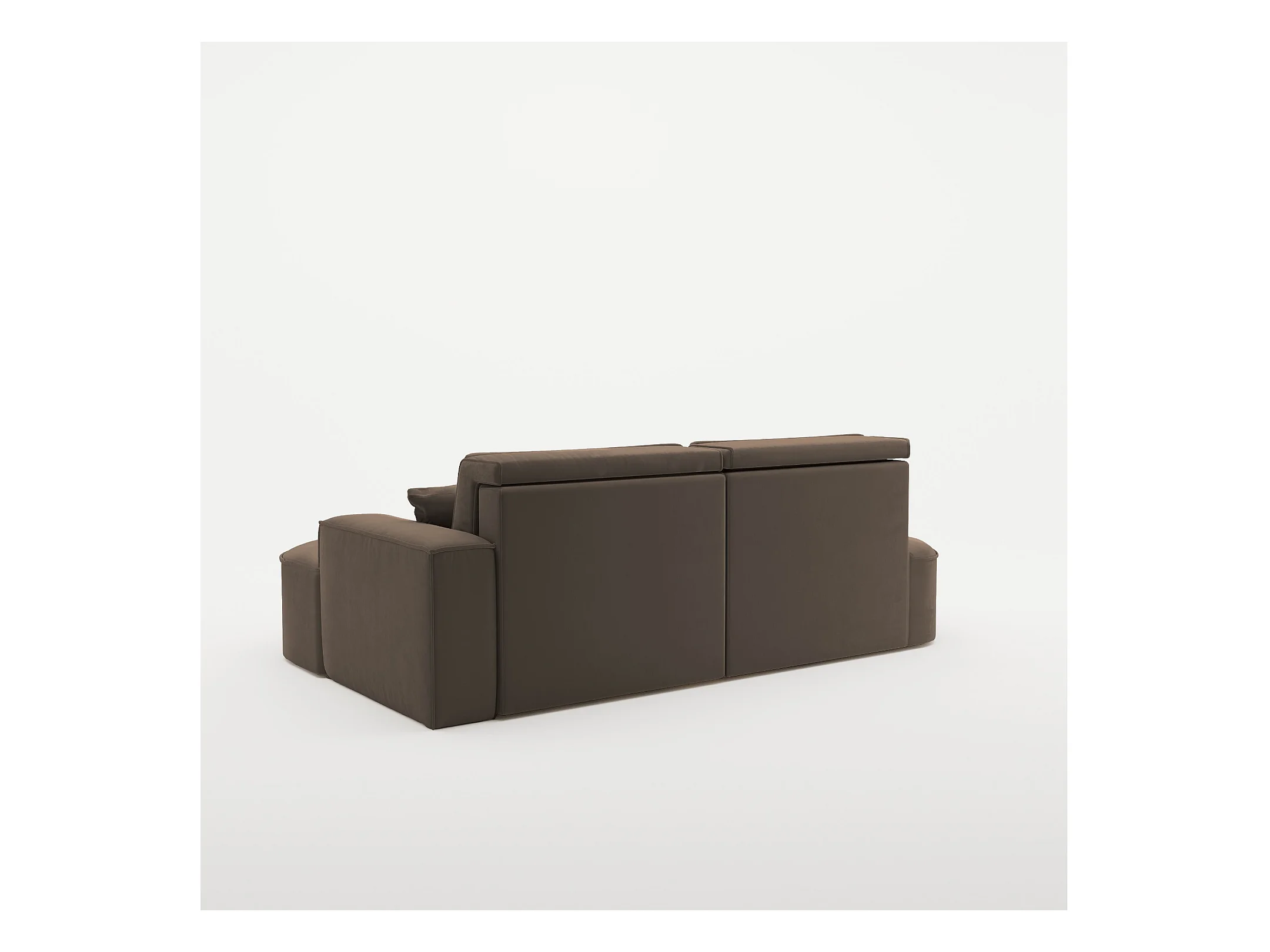 Canapé panoramique convertible LEVANO tissu - Rangement et appuie-têtes réglables-Marron-Coffre à gauche