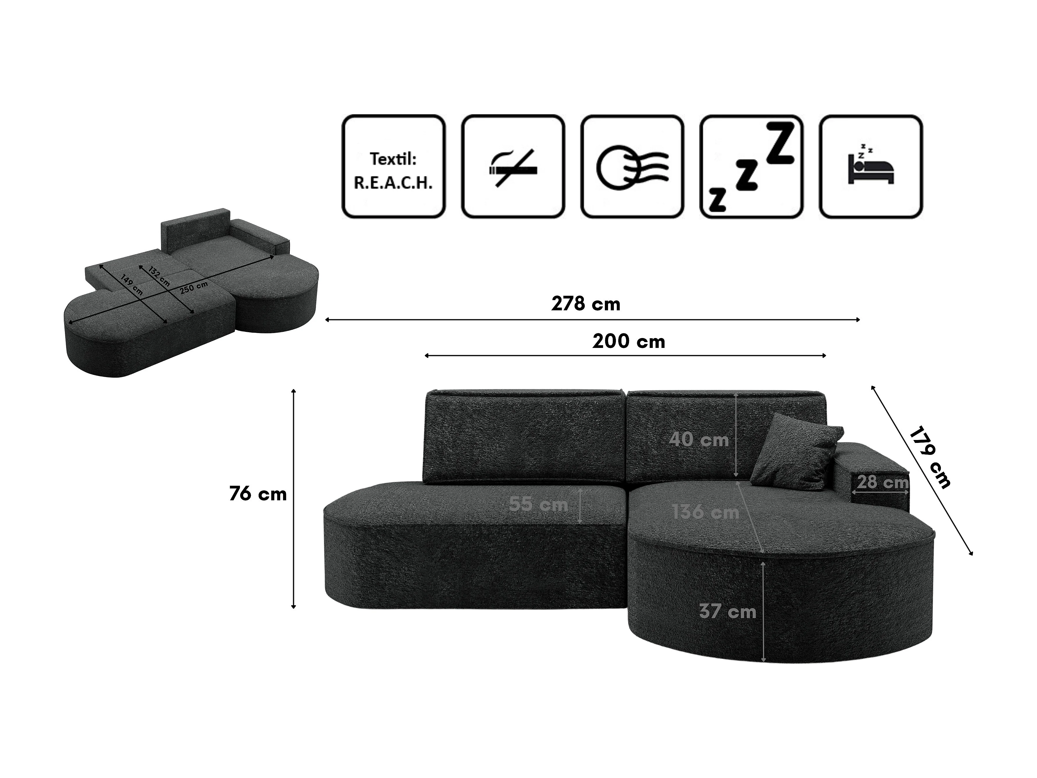 Canapé d'angle VIENNA - style, confort et fonctionnalité Graphite Droite