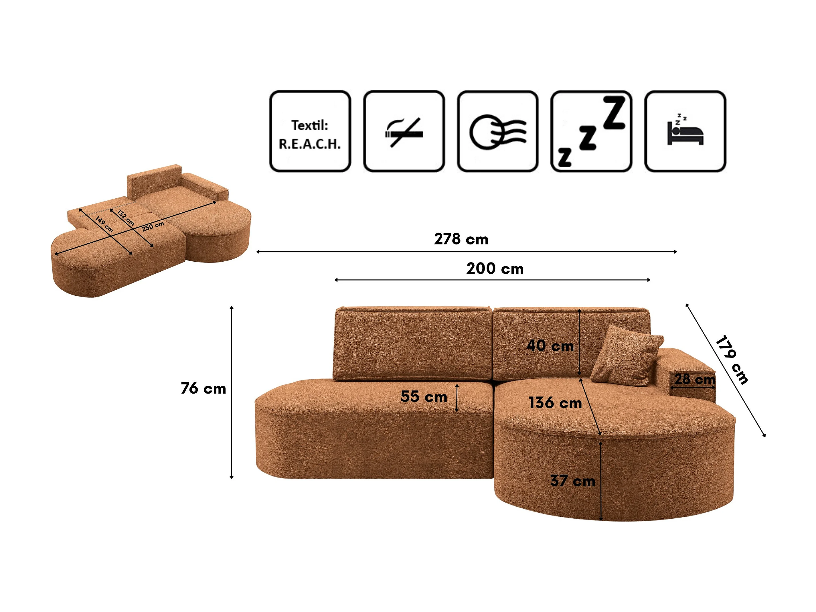 Canapé d'angle Modena Pro - confort et style dans un design moderne tissu Arena Orange Droite