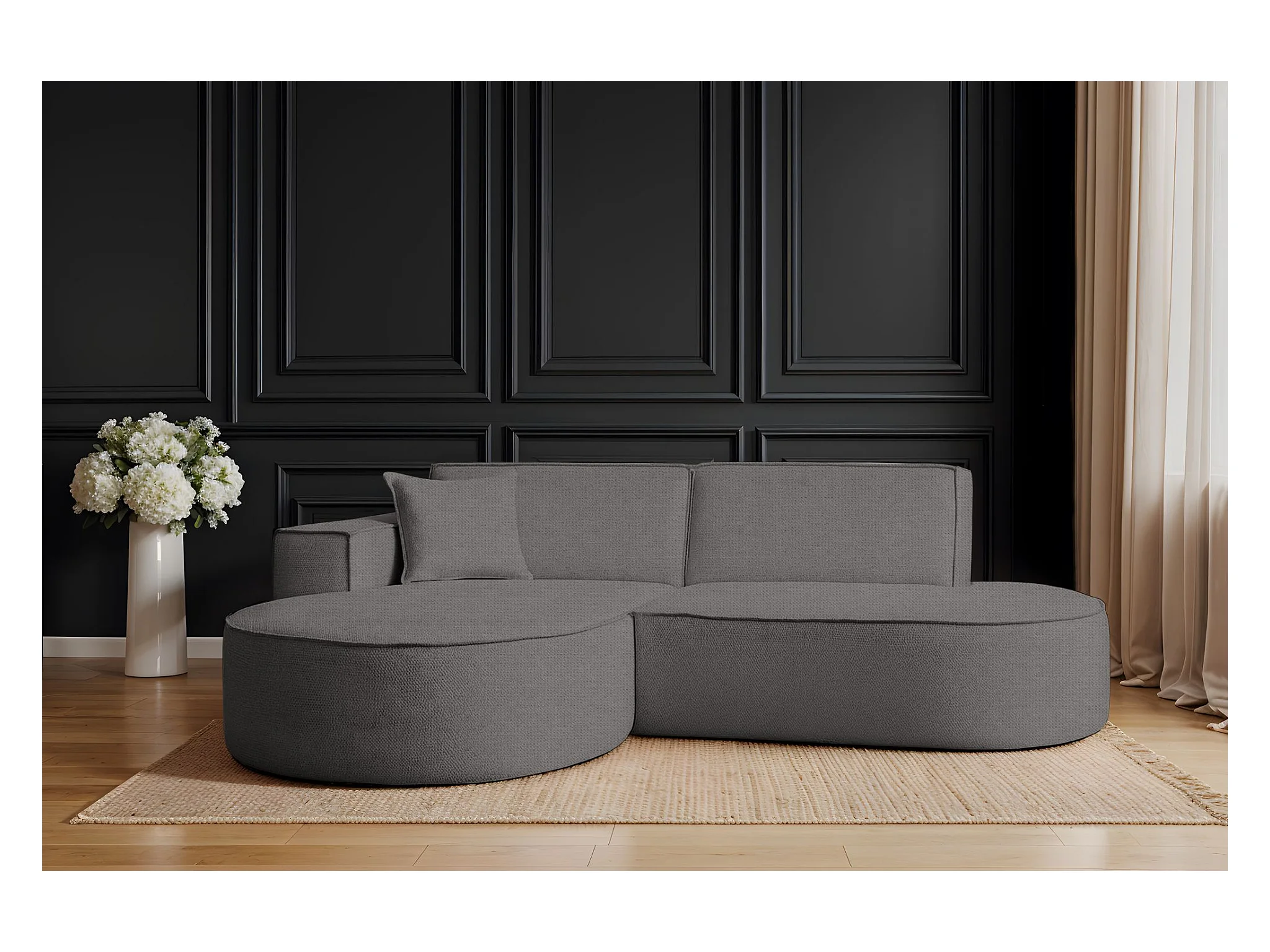Canapé d'angle en L PULA, tissu Perfect Harmony, gris, gauche
