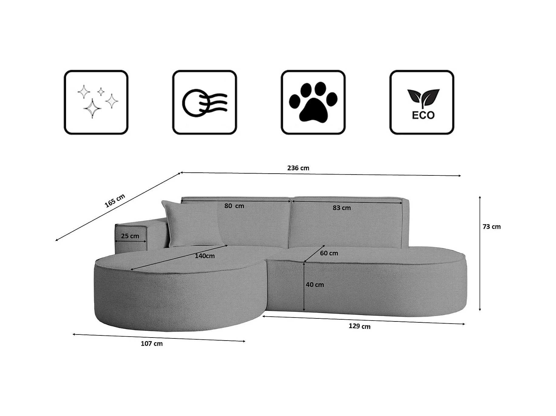 Canapé d'angle en L PULA, tissu Perfect Harmony, gris, gauche