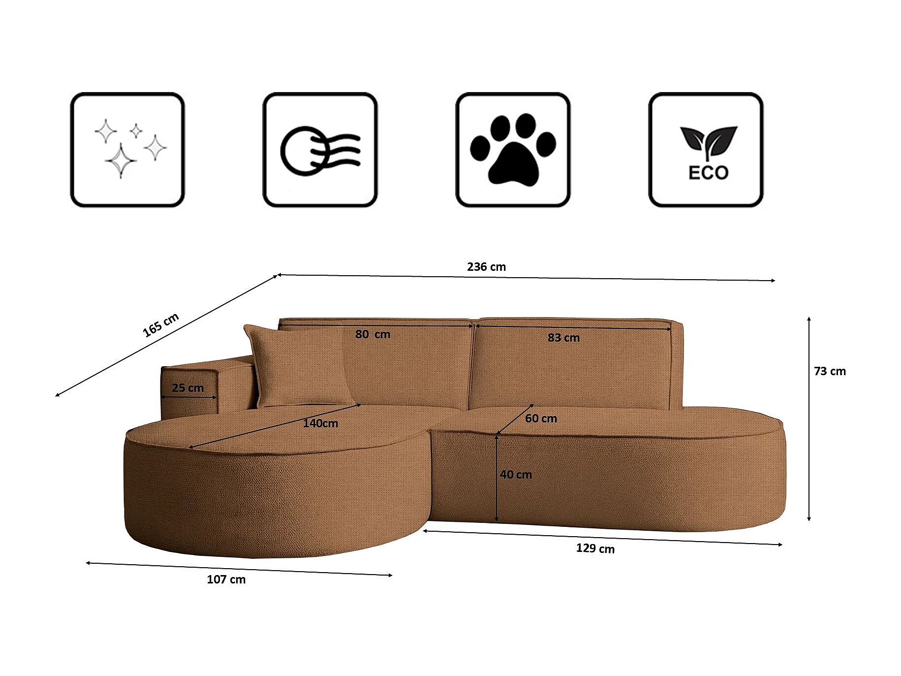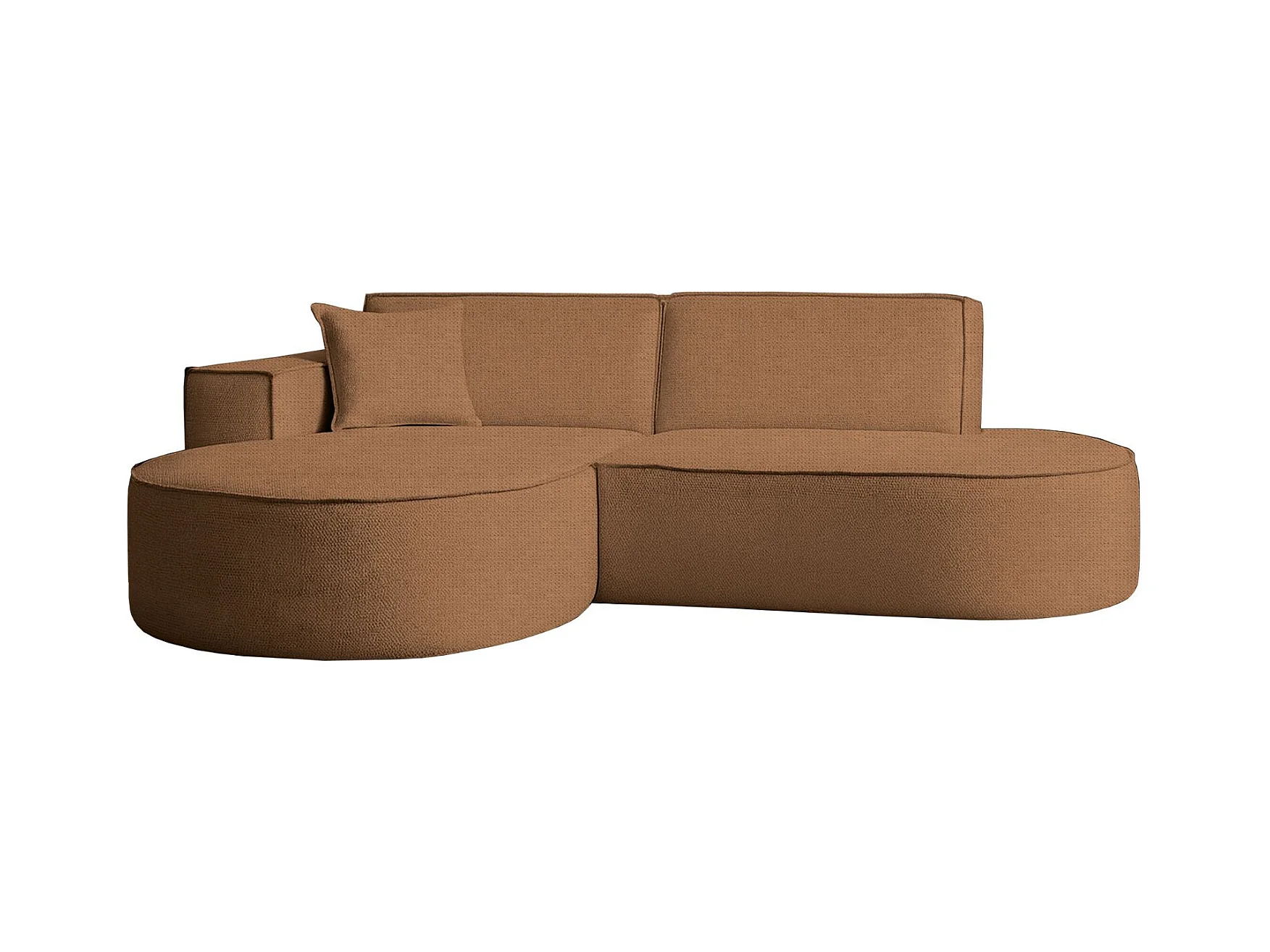 Canapé d'angle en L Round Cursal, tissu Poso, cuivre, gauche