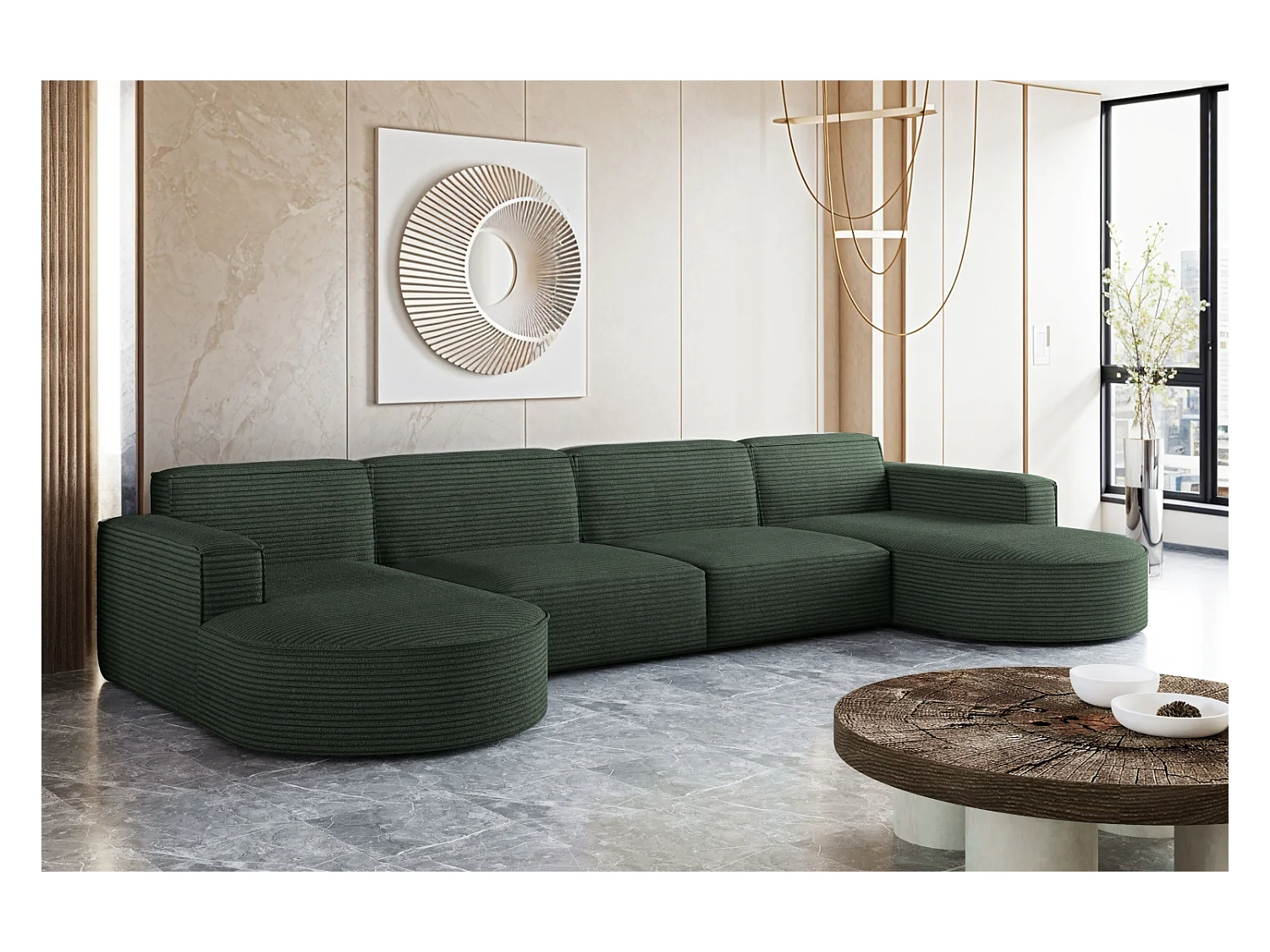 Canapé d'angle Modena en U, tissu Verita, vert foncé