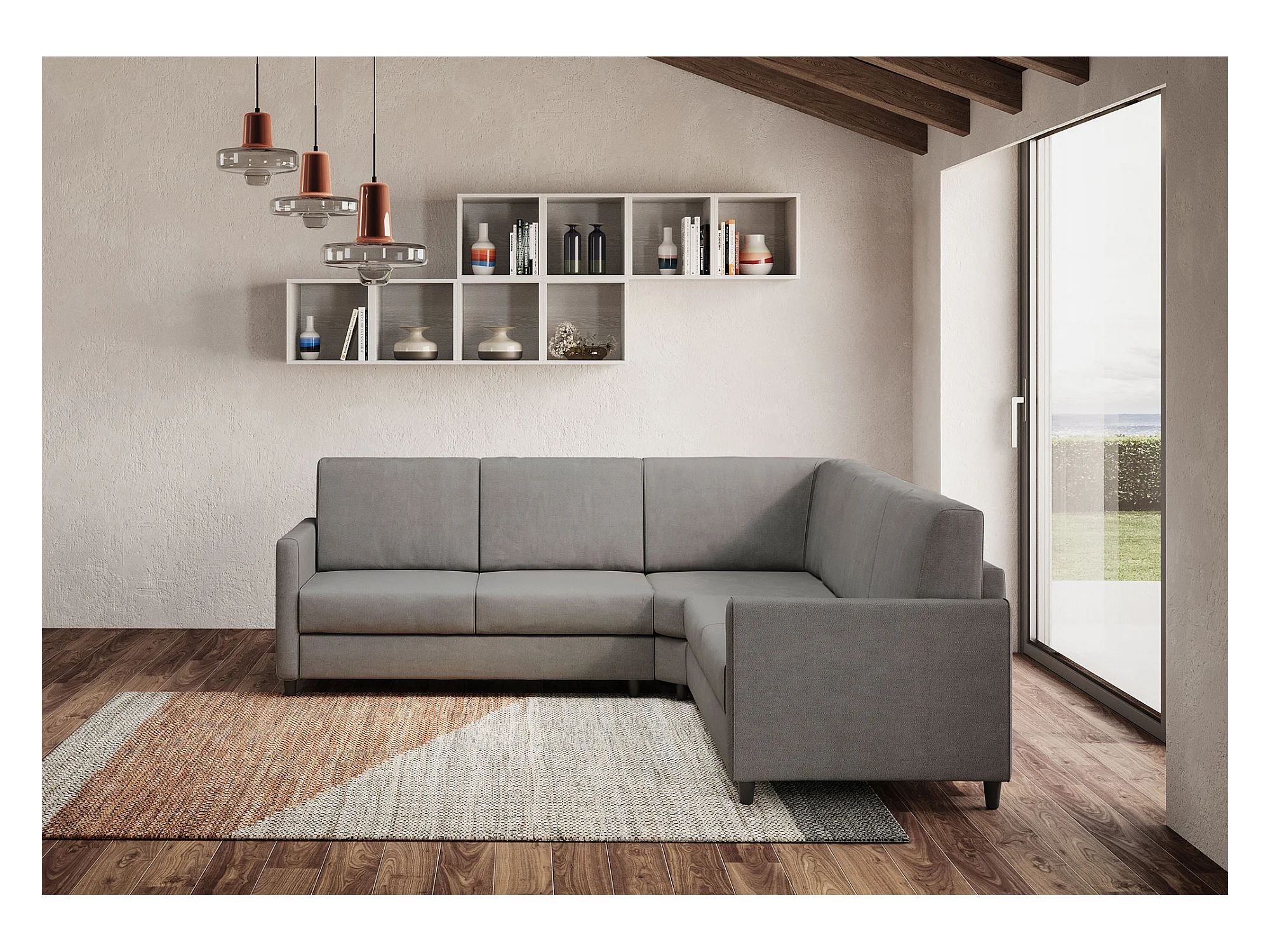 Canapé d'angle moderne italien tissu gris Korane - 5 tailles-Taille 241x241 cm