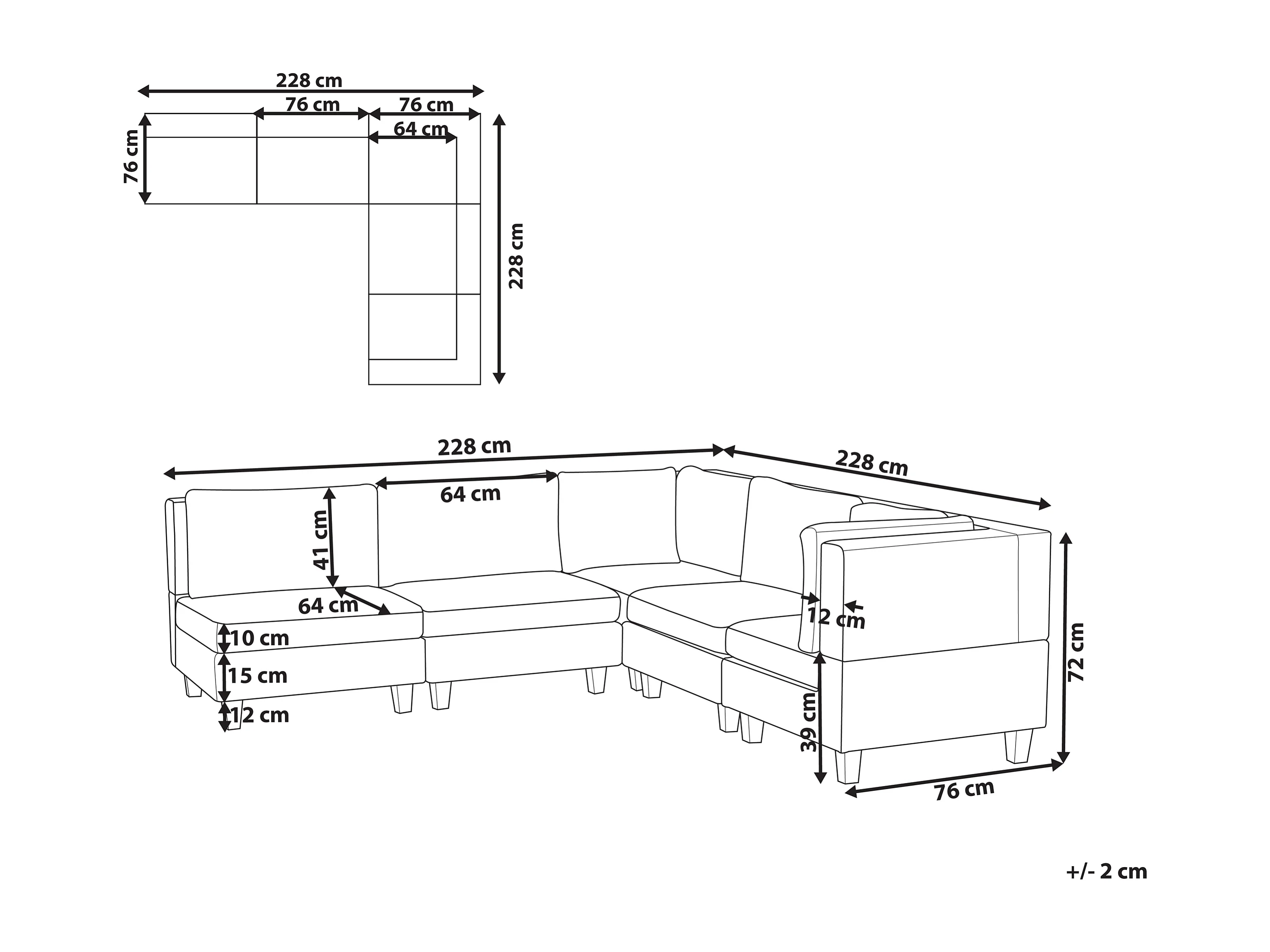 Canapé d'Angle Moderne Modulaire 5 Places Côté Gauche en Tissu Rembourré Noir Unstad