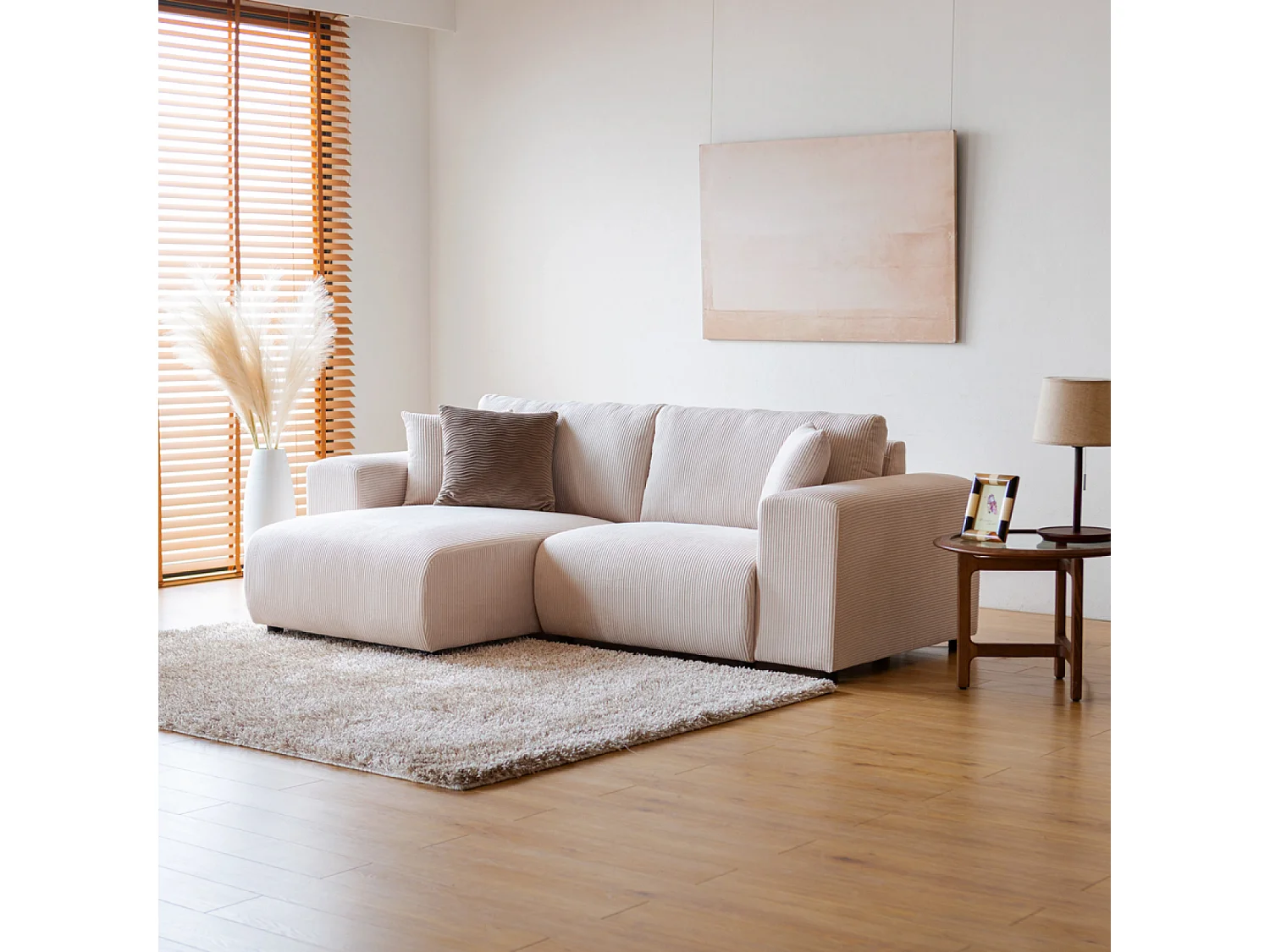 Canapé d'angle modulable 3 places en velours côtelé beige ABERDEEN