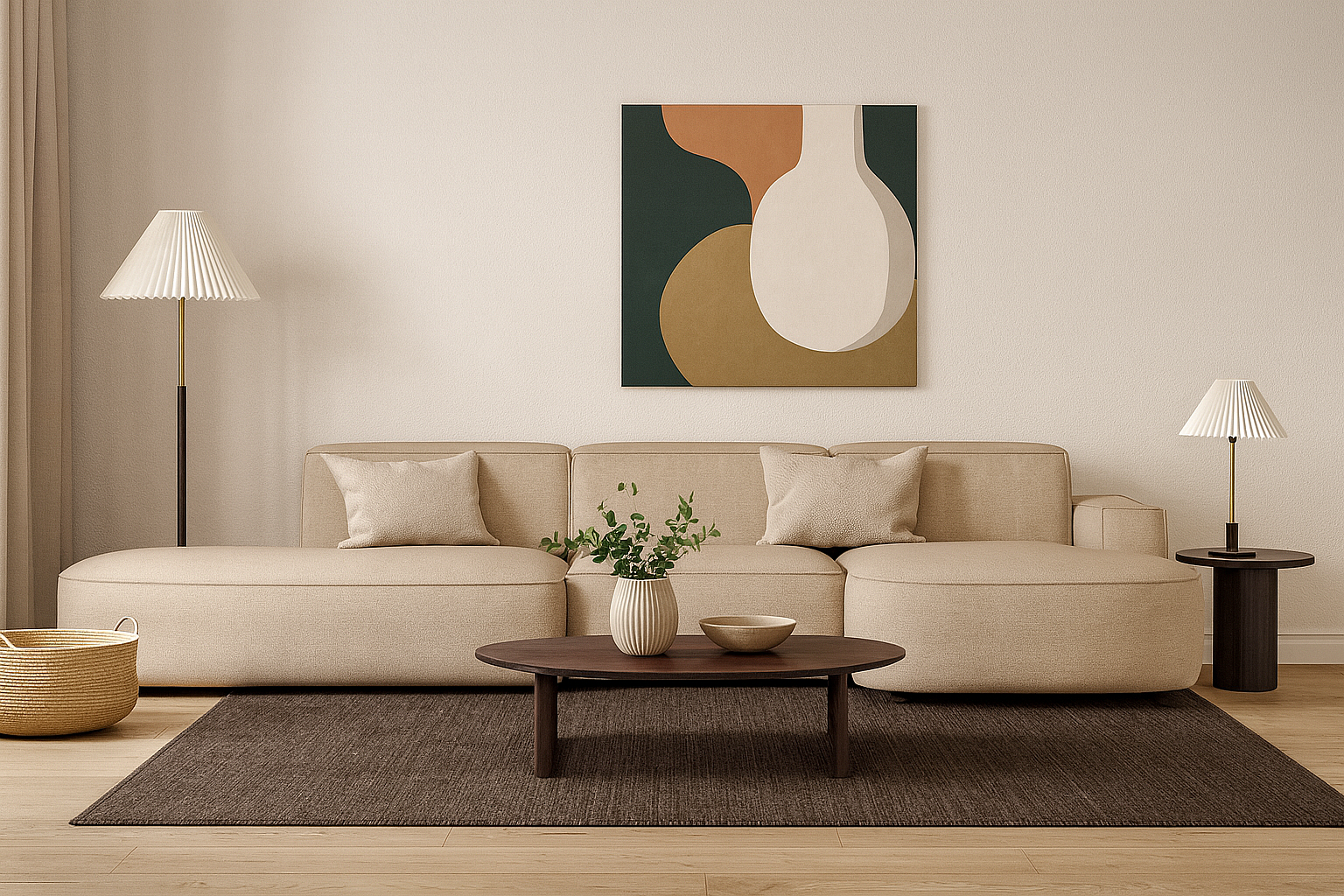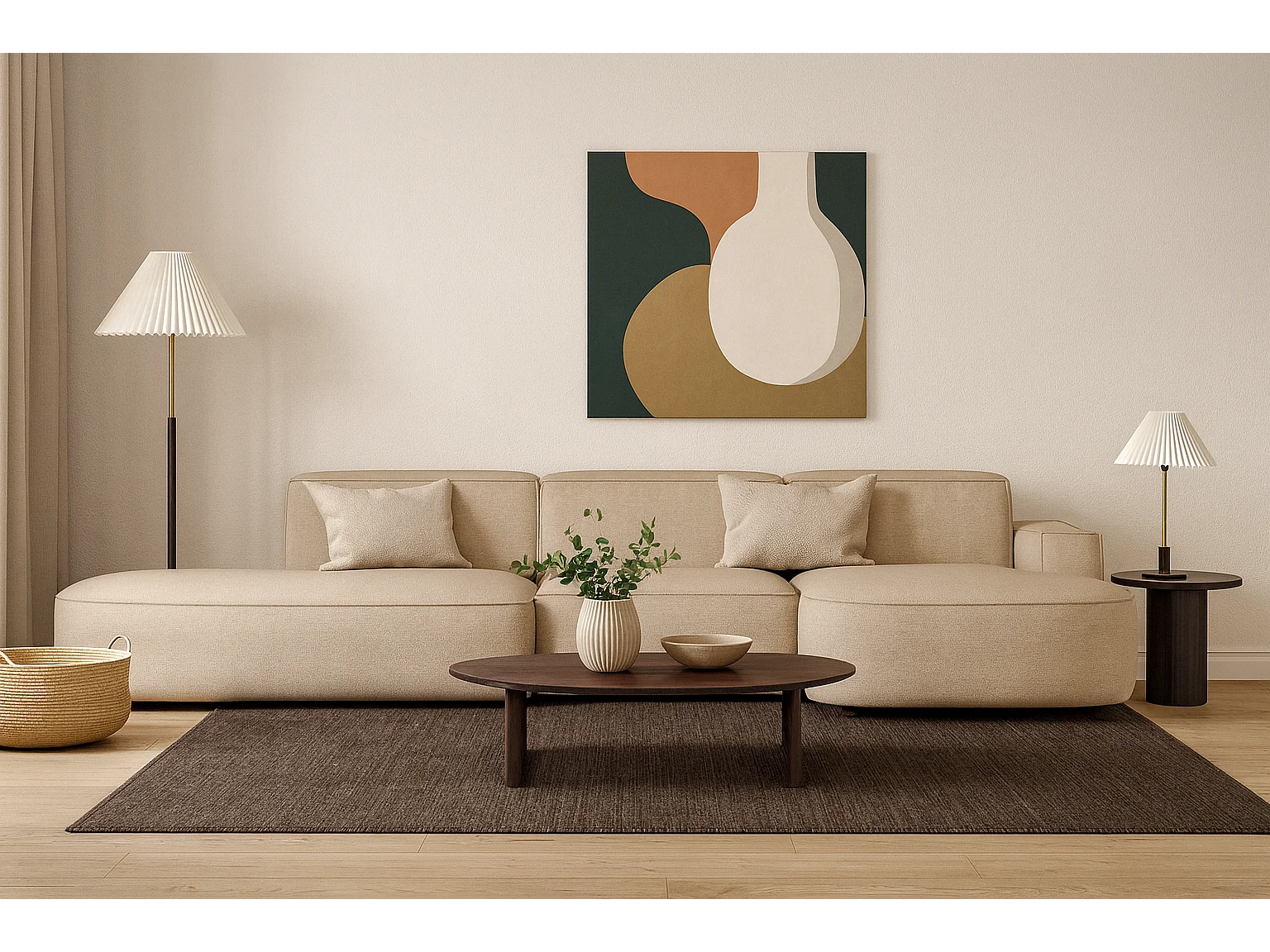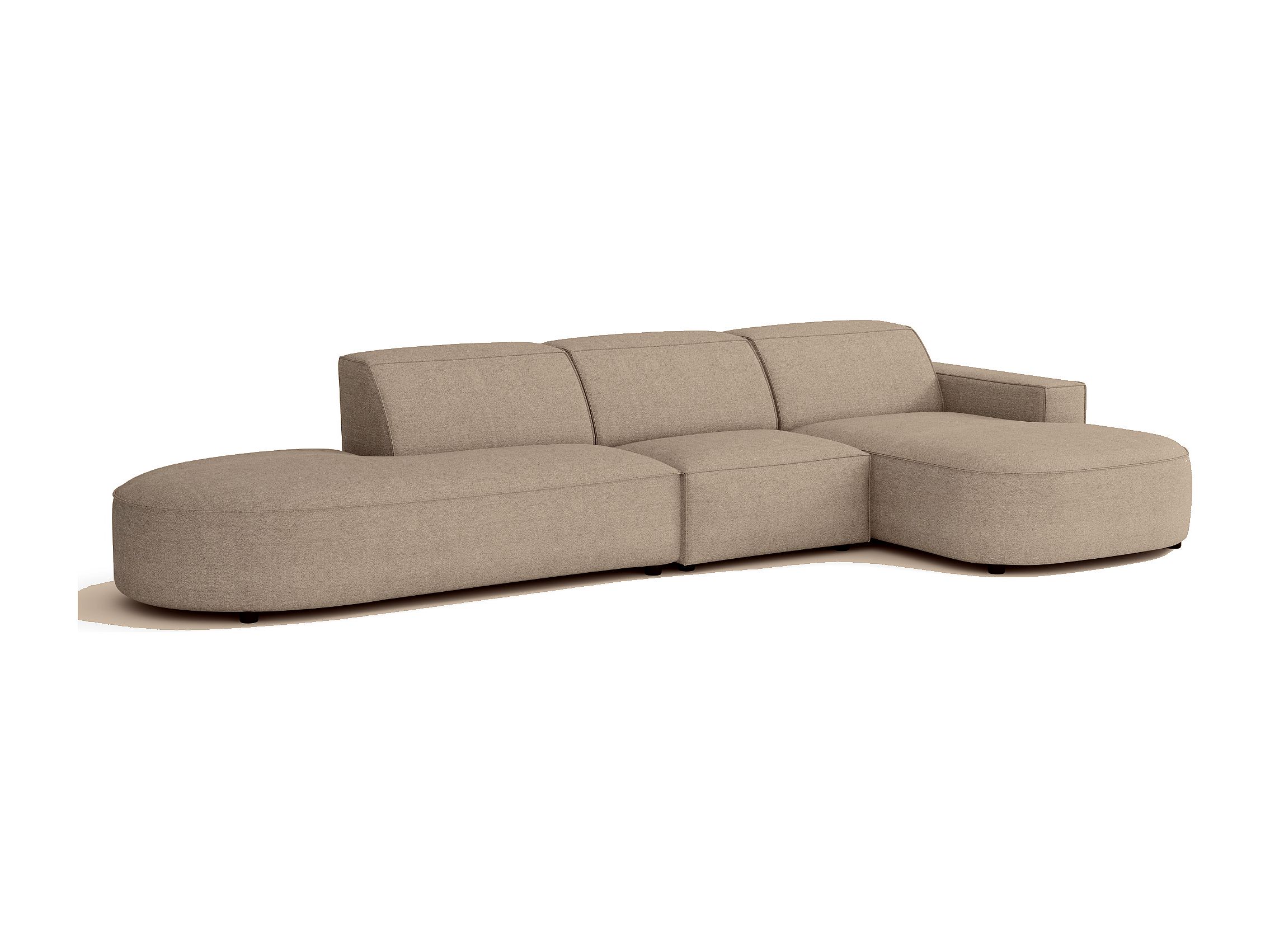 Canapé d’angle modulable CURSAL F – angle droit, 364×166×70 cm, beige Raven 30, méridiennes arrondies, autoportant