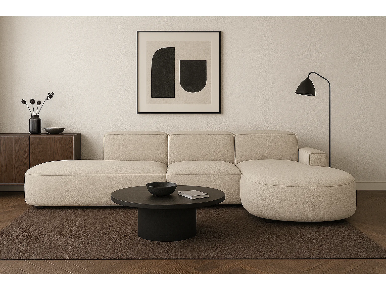 Canapé d’angle modulable CURSAL F – angle droit,, 364×166×70 cm, crème Raven 24, méridiennes arrondies, autoportant