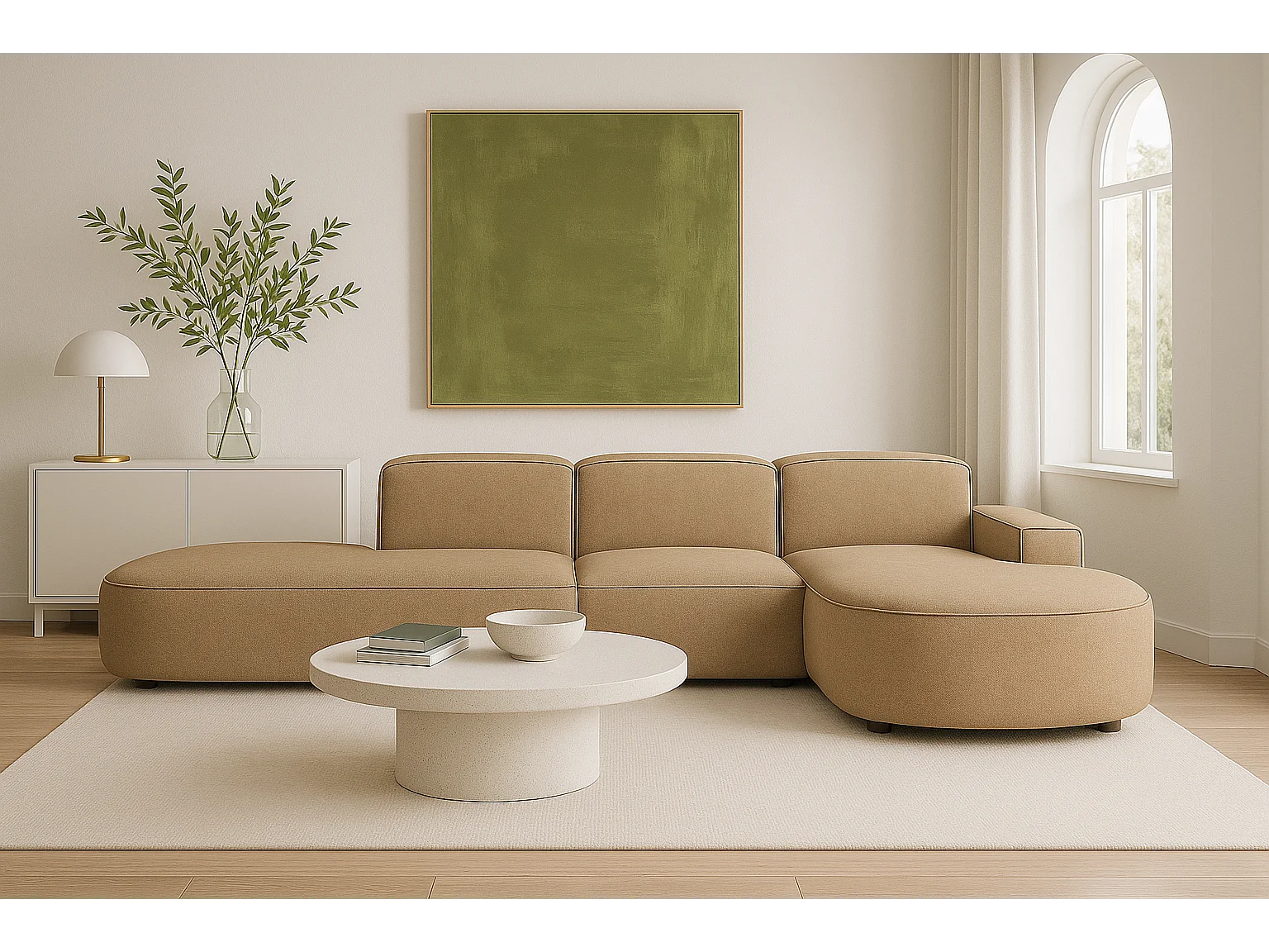 Canapé d’angle modulable CURSAL F – angle droit,, 364×166×70 cm, marron clair Raven 34, méridiennes arrondies, autoportant