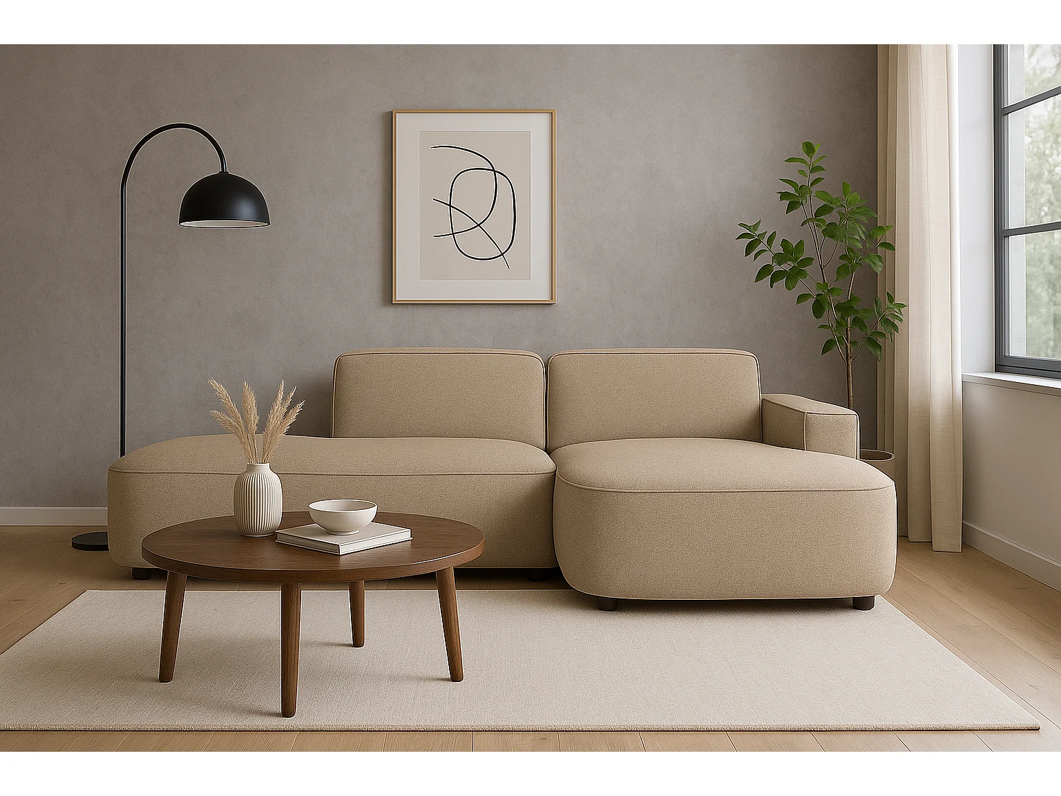 Canapé d’angle modulable CURSAL G – angle droit, 284×166×70 cm, beige Raven 30 méridiennes arrondies, autoportant