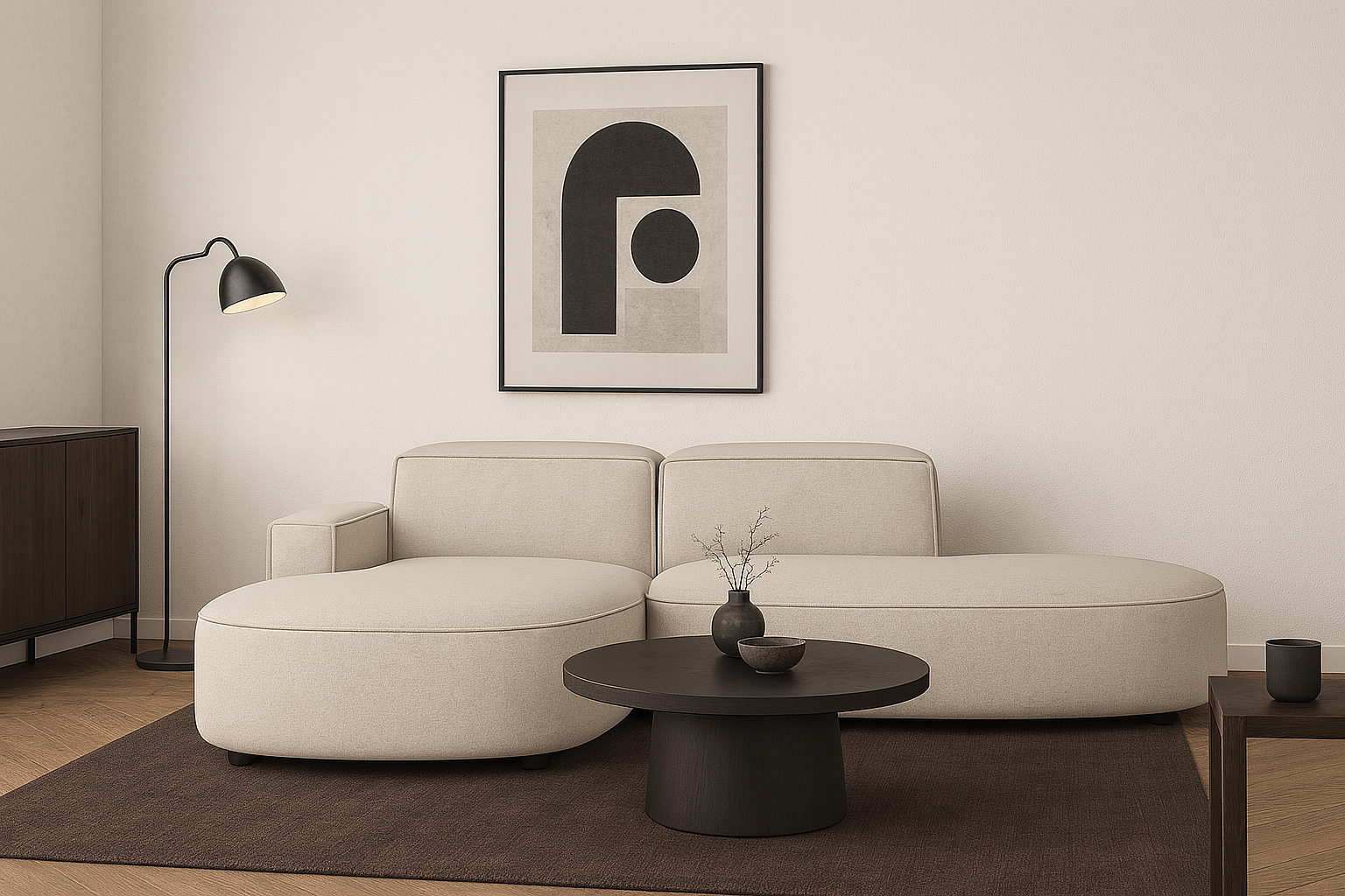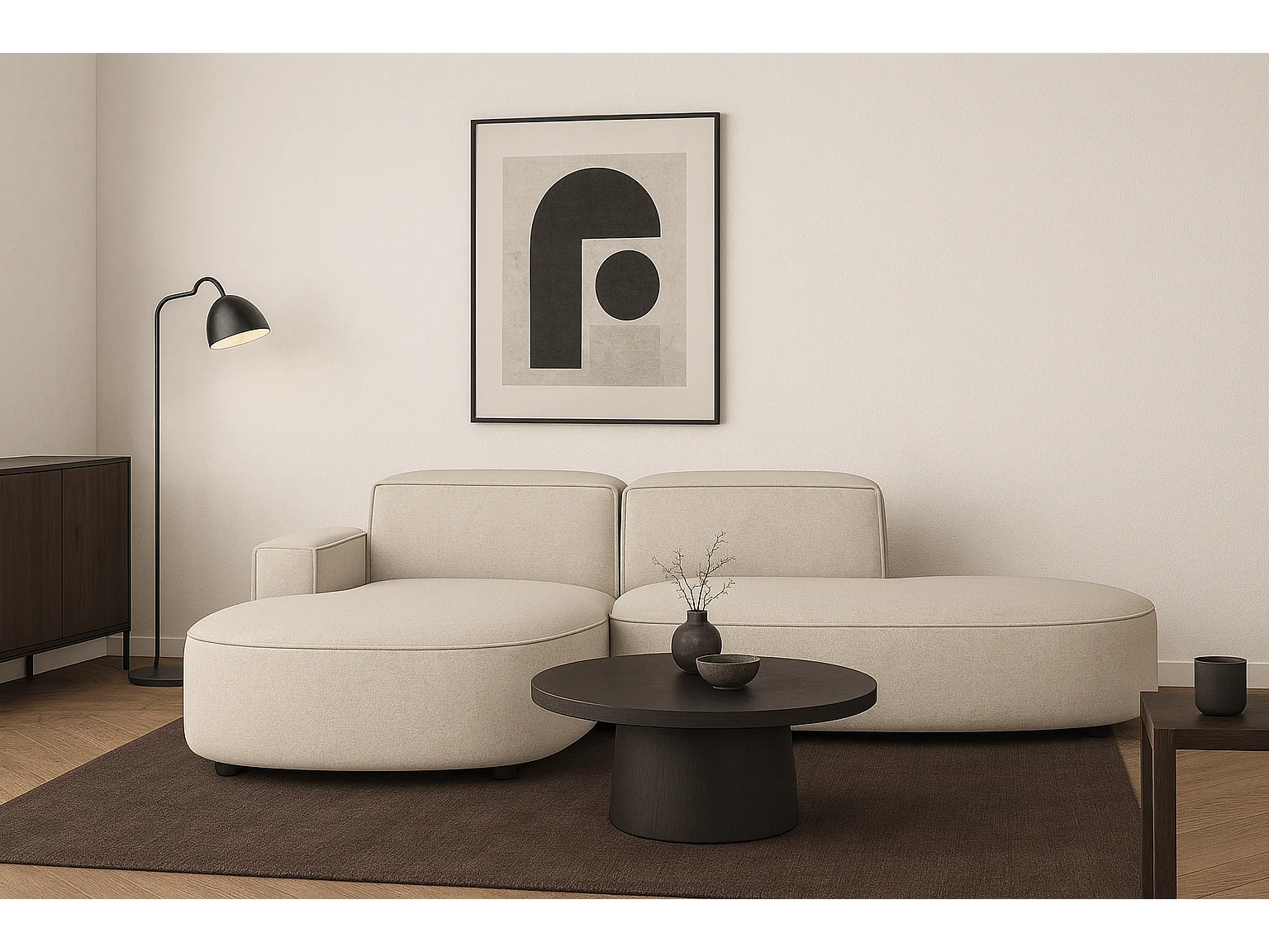 Canapé d’angle modulable CURSAL G – angle gauche, 284×166×70 cm, crème Raven 24 méridiennes arrondies, autoportant