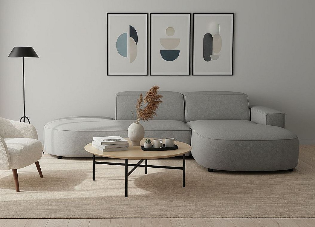 Canapé d’angle modulable CURSAL G – angle gauche, 284×166×70 cm, gris Raven 7 méridiennes arrondies, autoportant