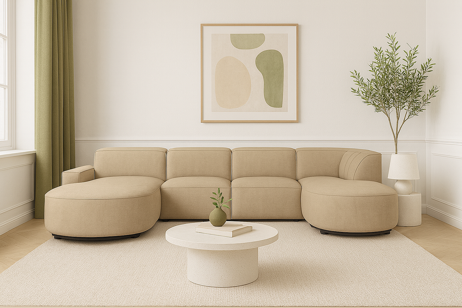 Canapé d’angle modulable CURSAL H – angle gauche, marron clair Raven 34 , 364×166/284×70 cm