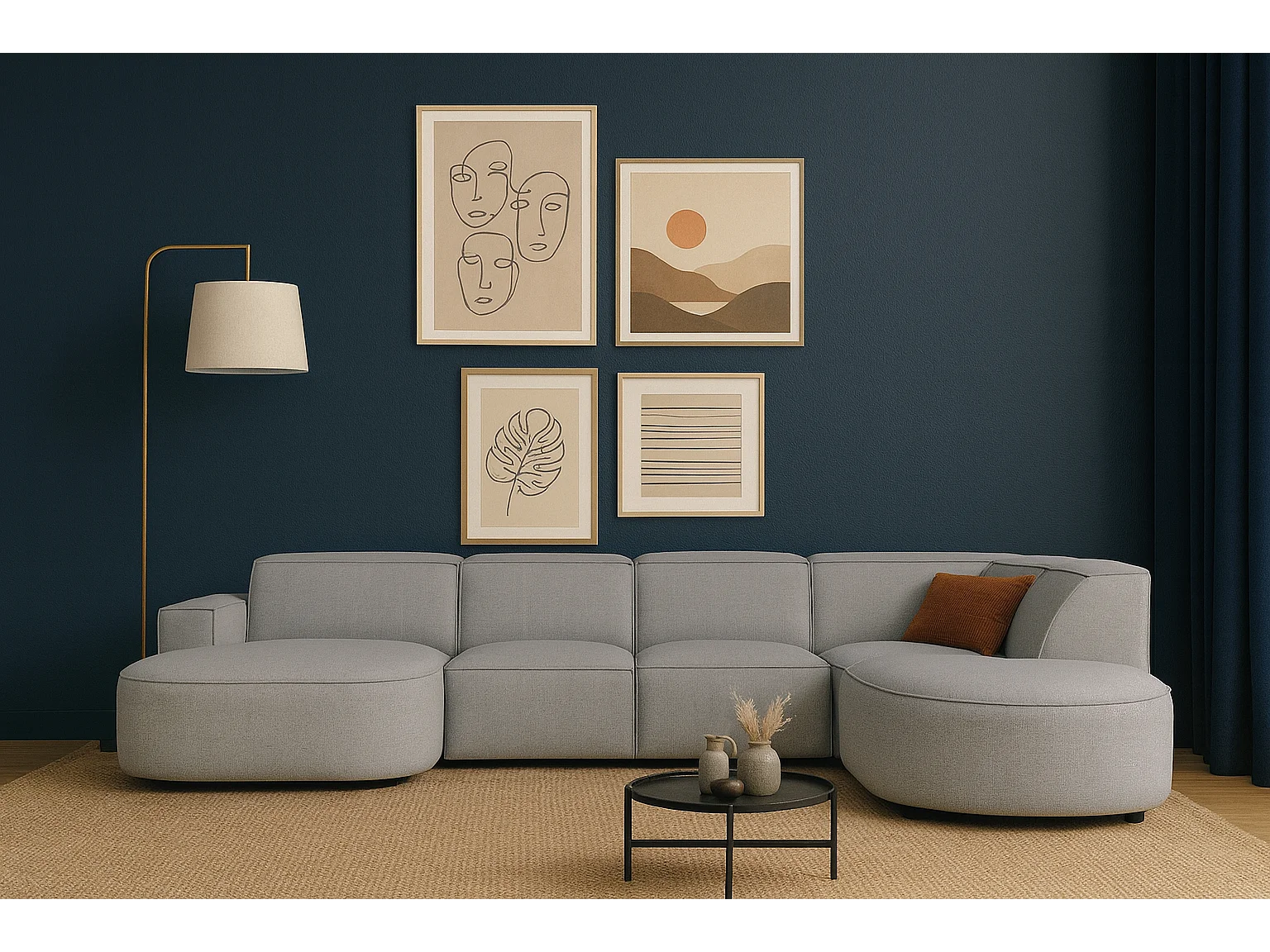 Canapé d’angle modulable CURSAL H – angle gauche, Raven 7 gris , 364×166/284×70 cm