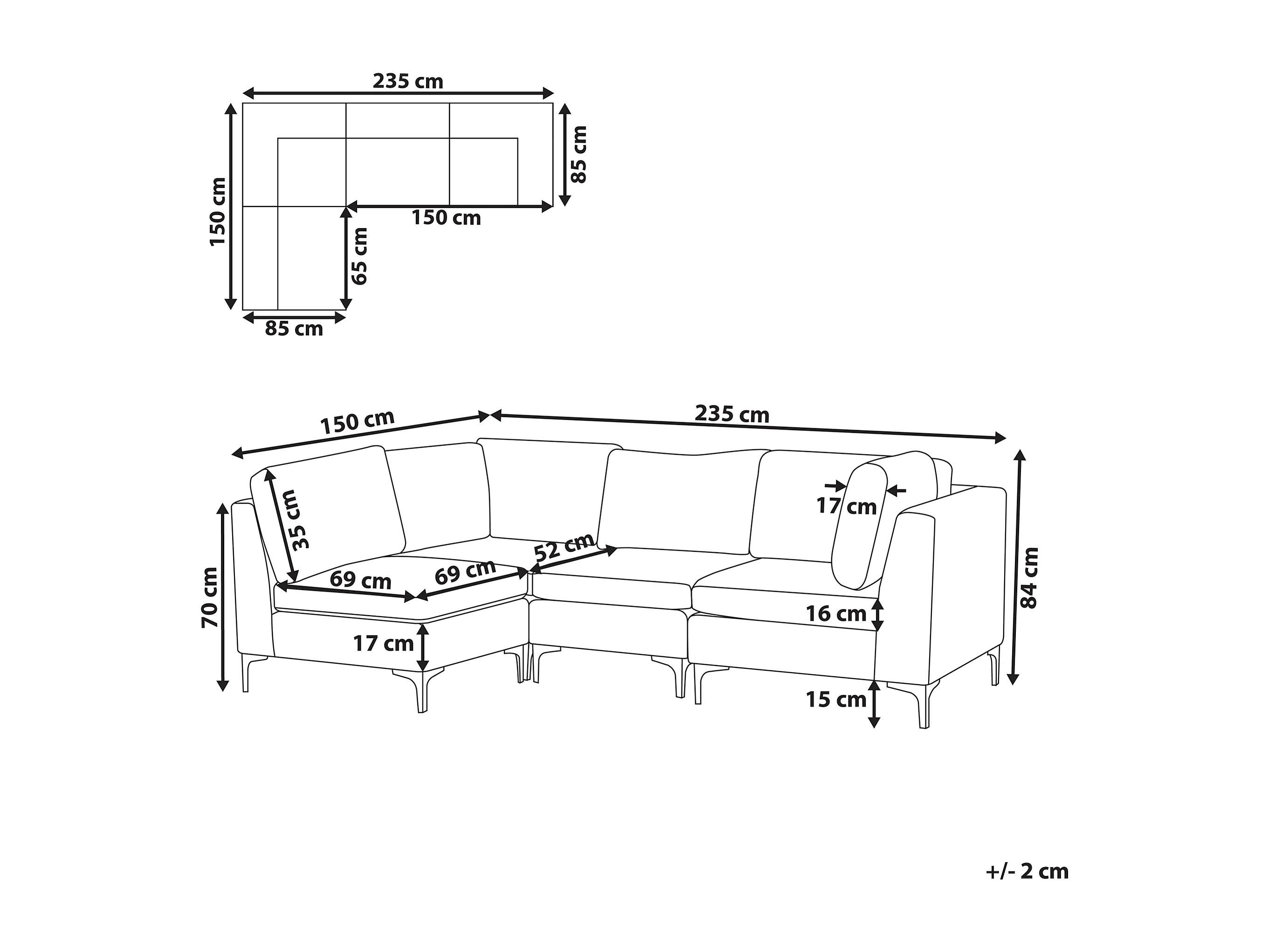 Canapé d'Angle Modulable - Evja - Côté Droit, 4 Modules, en Velours, Gris