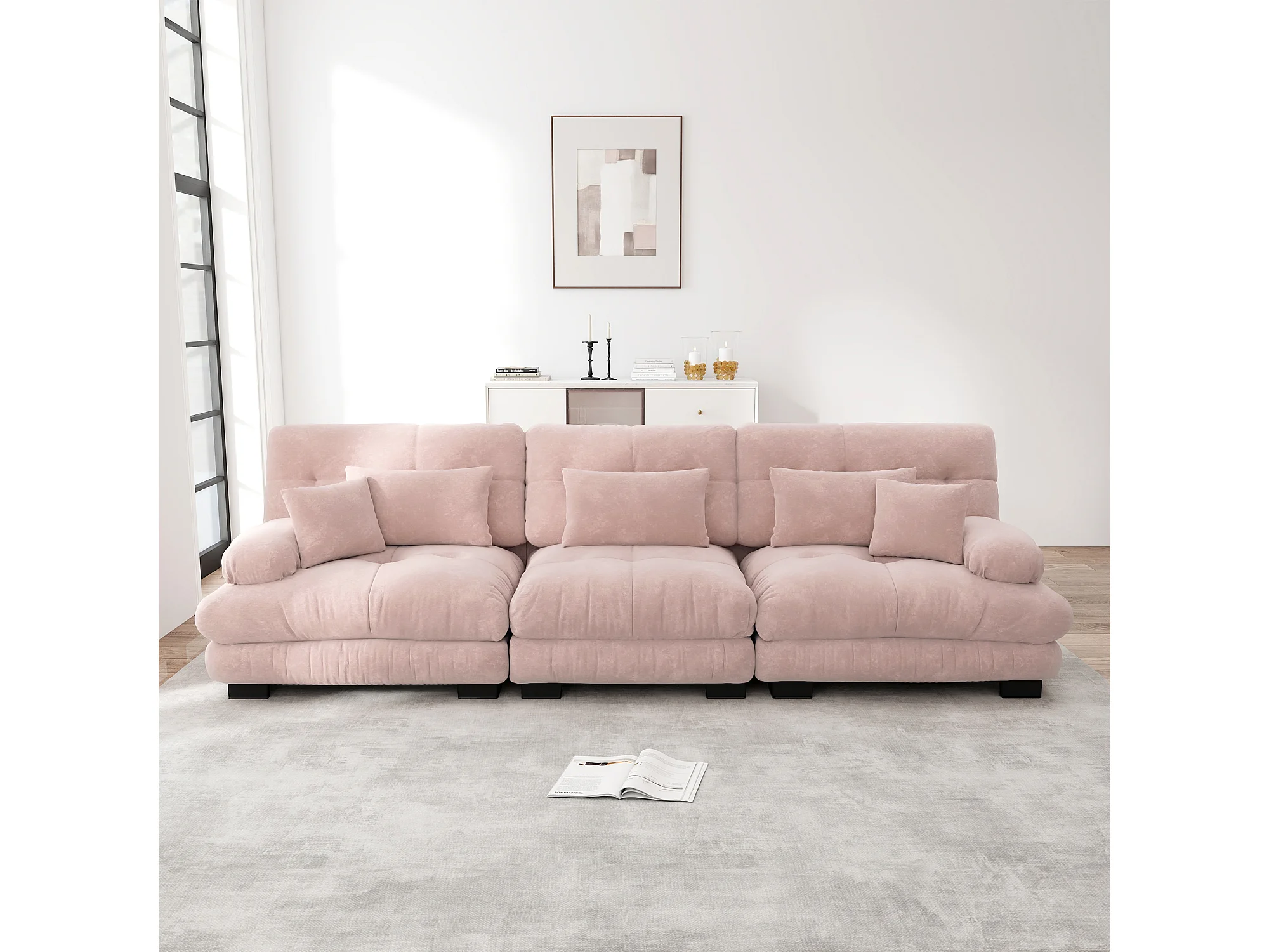 Canapé d'angle modulaire 3 places avec assise profonde, canapé convertible en chenille, confortable, pour salon, appartement, studio(313x77x81 cm)